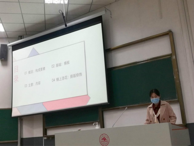讲座伊始,管悦强调PPT是“内容为王”,随后分享了她制作PPT的实用经验与常用的素材网站。管悦不但在细节美化、风格选择上给出自己的建议,而且还进行了现场演示,大到整体模板设计,小到文字图片版式,都给出了直接的呈现。陈璐则从不同的场合主题入手,以PPT为示例,向同学们展示了不同情景下(讲座教学、课堂展示、课外兼职等)应该具体选择哪一种PPT,从而最好地满足受众的需要。最后,沈娜为大家分享了她制作PPT的网站和工具,并强调了PPT制作的注意事项。此外,她还通过视频,为大家开拓了全新的PPT制作思路。分享会期间,三位主讲人与观众进行互动,现场气氛十分融洽。会后,实践部分享给同学们众多PPT素材与模板,供大家参考使用。