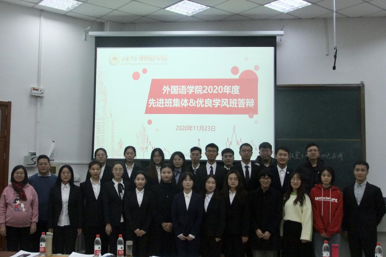 整场答辩亮点频现,18级法英国际组织班在班级特色中介绍了 “法英双语卓越创新国际组织人才实验班”的特色班型;18级翻译班强调班级就像大家庭一样温暖,可以容纳来自五湖四海、不同民族的同学;19级翻译班展示了其“三维一体”的创新型班级管理模式;18级德语班展示了其丰富的科研实践项目;18级英一班用凝练的五个“H”(Head , Heart , Honor , Health ,Home)来介绍他们的集体;19级英政班展示了其创新的思政建设、多样的志愿实践等活动。其他的参赛班级也都充分地展现出各自的风采。