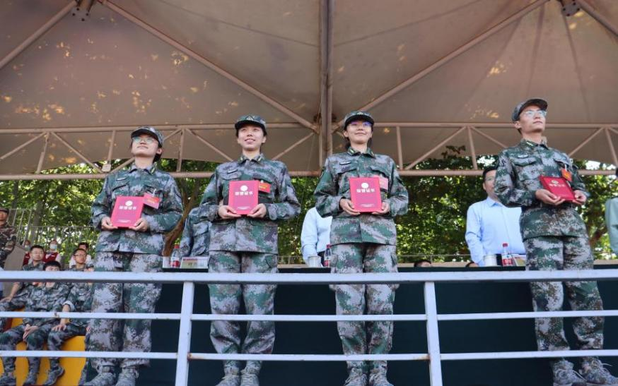 9月29日,威廉希尔中文官方网站2021级本科新生于威廉希尔中文官方网站中心校区体育场参加阅兵仪式。外院军训学员顺利完成训练任务,获得“优秀连队”称号,威廉希尔中文官方网站本科21级辅导员陈诺获得“优秀参训学生工作干部”荣誉称号,威廉希尔中文官方网站本科21级国际组织班学生梅傲寒作为优秀学员代表上台领奖,50名外院学子获得“优秀学员”称号。