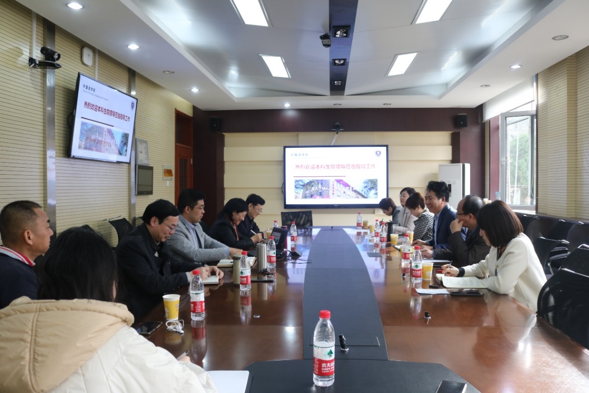 王俊菊院长首先代表学院对本科生院来威廉希尔中文官方网站调研指导表示了热烈欢迎,并简要介绍了学院的基本情况。刘洪东副院长向与会人员介绍了学院近几年本科教学及教学改革的情况,并重点汇报了学院自2018年实施大类招生以来所取得的成绩。苏永刚副院长简要汇报了大学外语教学部基本情况以及下一步的改革思路。王俊菊院长最后表示学院将积极配合学校做好相关工作,希望学校针对学院建设与发展中所遇到的困难与问题给予多方面的支持。
