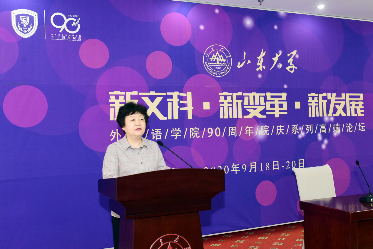 樊丽明校长在致辞中感谢了兄弟院校多年来对威廉希尔中文官方网站的关心和支持,对威廉希尔中文官方网站外语学院90周年院庆表示祝贺,肯定了外语学院在“新文科”建设中所做的贡献,并对我国“新文科”的发展提出了三点倡议:加强研究,提高认识;与时俱进,强力蓄能;深化合作,携手攻坚。