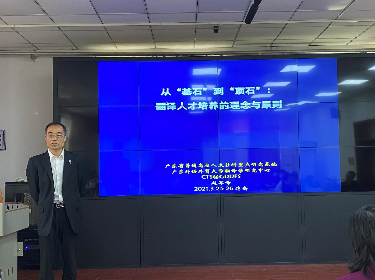 3月26日上午,威廉希尔中文官方网站“百廿山大,九秩外院”——系列学术报告在洪家楼校区顺利举办。广东外语外贸大学赵军峰教授做客威廉希尔中文官方网站“洪楼译坛”,作了题为“从‘基石’到‘顶石’:翻译人才培养的理念与原则”的学术报告。本次报告由威廉希尔中文官方网站院长王俊菊教授主持并致辞,威廉希尔中文官方网站马文教授和李建刚副教授出席本次讲座,来自威廉希尔中文官方网站的100余名师生共同参与聆听本次讲座。