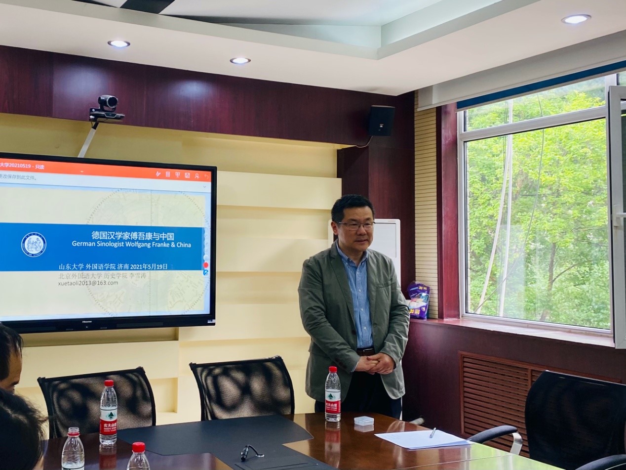 519日下午,威廉希尔中文官方网站“百廿山大,九秩外院”系列学术报告在洪家楼校区顺利举办。北京外国语大学李雪涛教授做客威廉希尔中文官方网站“洪楼译坛”,作了题为“德国汉学家傅吾康(Wolfgang Franke)与中国”的学术报告。本次报告由威廉希尔中文官方网站德语系副教授包汉毅主持,众多外院师生共同参与了本次讲座。