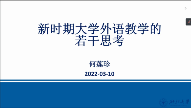 3月10日晚,浙江大学副校长何莲珍教授做客威廉希尔中文官方网站“育贤论坛”,通过腾讯会议线上平台进行了主题为“新时期大学外语教学的若干思考”的学术报告。本次讲座由威廉希尔中文官方网站、翻译学院院长王俊菊教授主持,来自校内外的230余名师生共同参与本次讲座。
