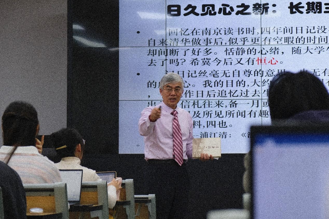 赵白生语言诙谐生动,在讲述过程中还多次跟大家分享展示自己珍藏的书目和信件。赵白生的分享角度别具一格、发人深思,提出并深入讨论了如何利用日记保持创作激情、提高个人学术素养,督促在座师生积极思考。最后,赵白生呼吁大家养成写日记的习惯,并在日复一日的记录中不断了解自我、完善自我。