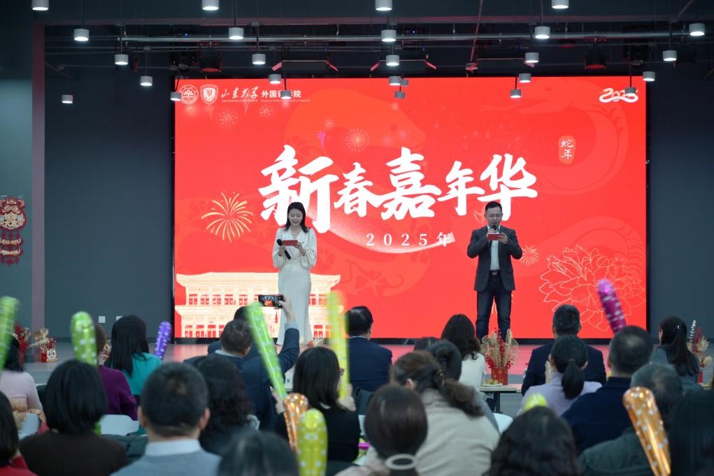 一元复始,万象更新。1月13日下午,洪家楼校区大学生活动中心张灯结彩、暖意融融,威廉希尔中文官方网站2025年新春嘉年华在这里举行。学院教职工和退休教师代表欢聚一堂,互道新年祝福、共忆往昔美好、齐话学院未来。在主持人学院工会女工委员董然、文艺委员陈诺温馨开场后,新春嘉年华正式拉开序幕。