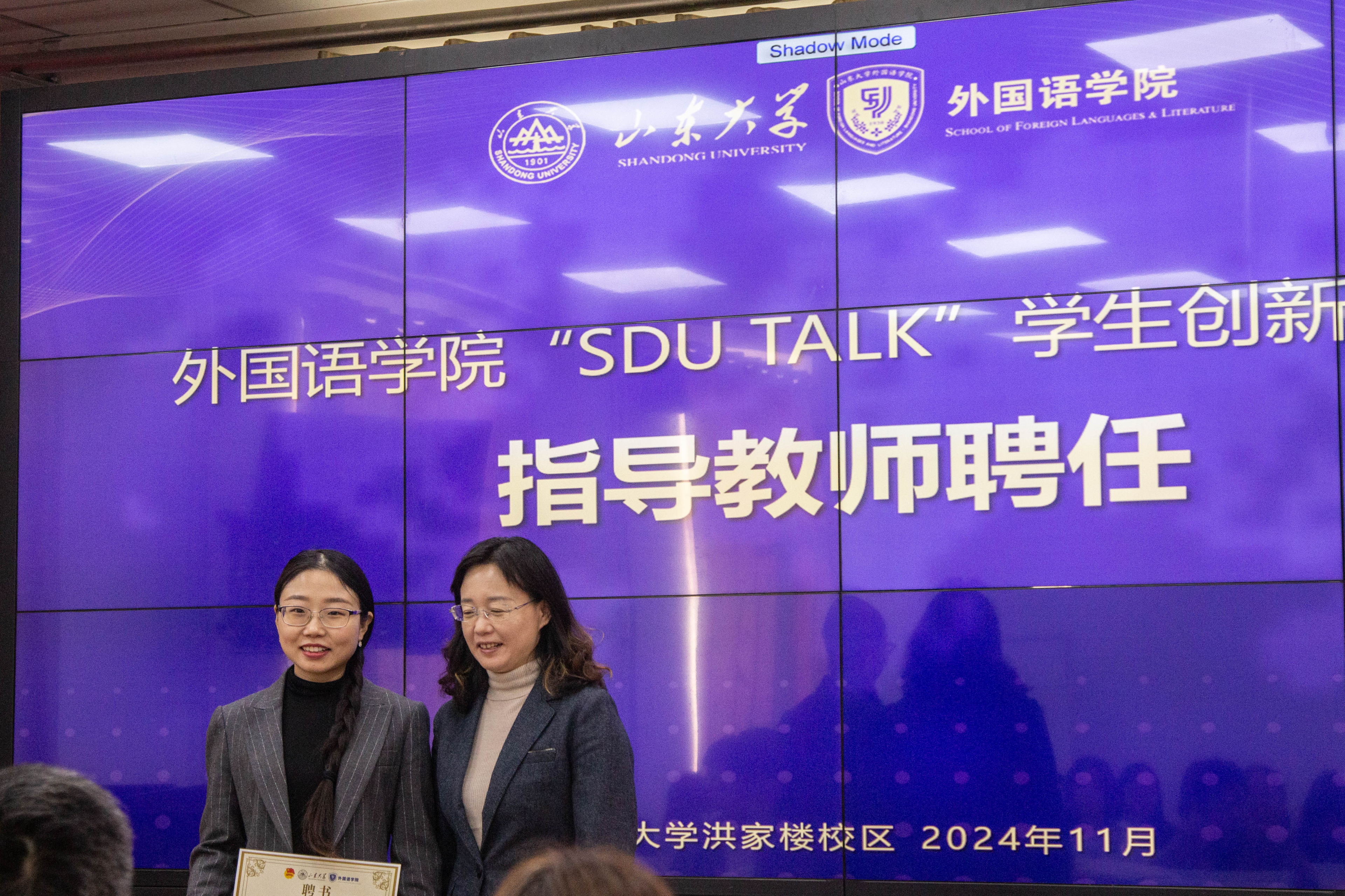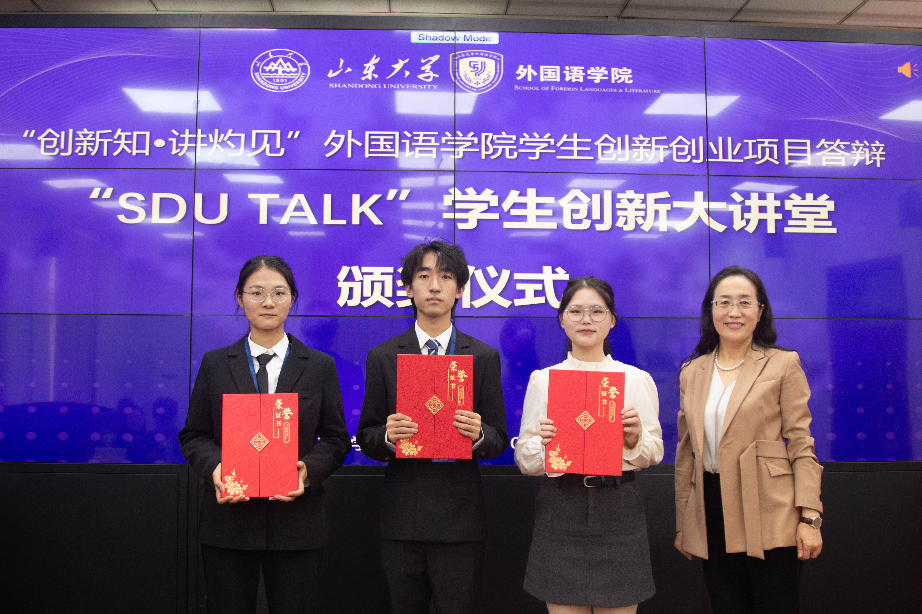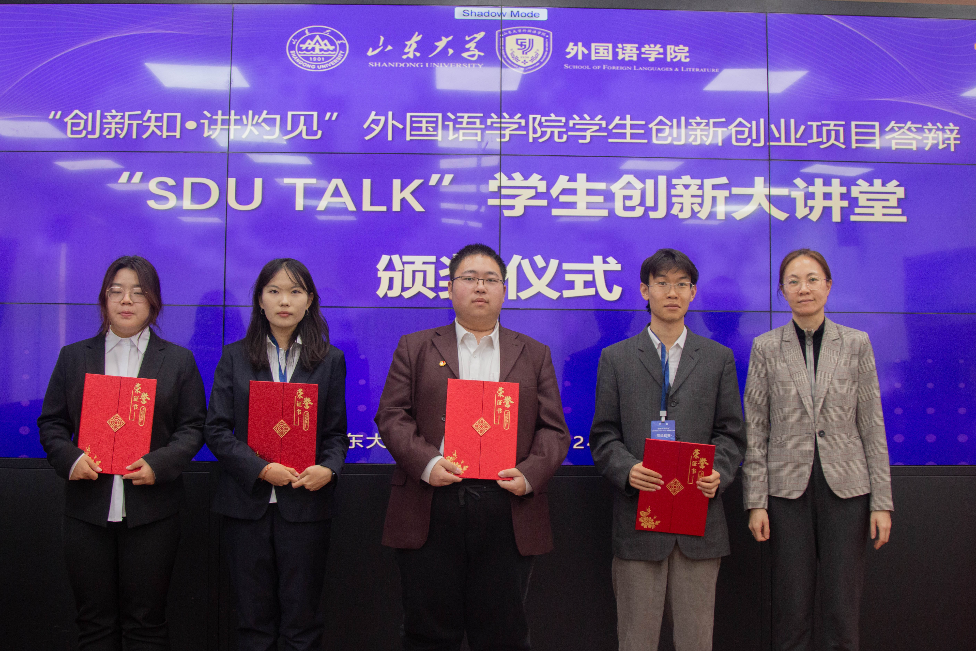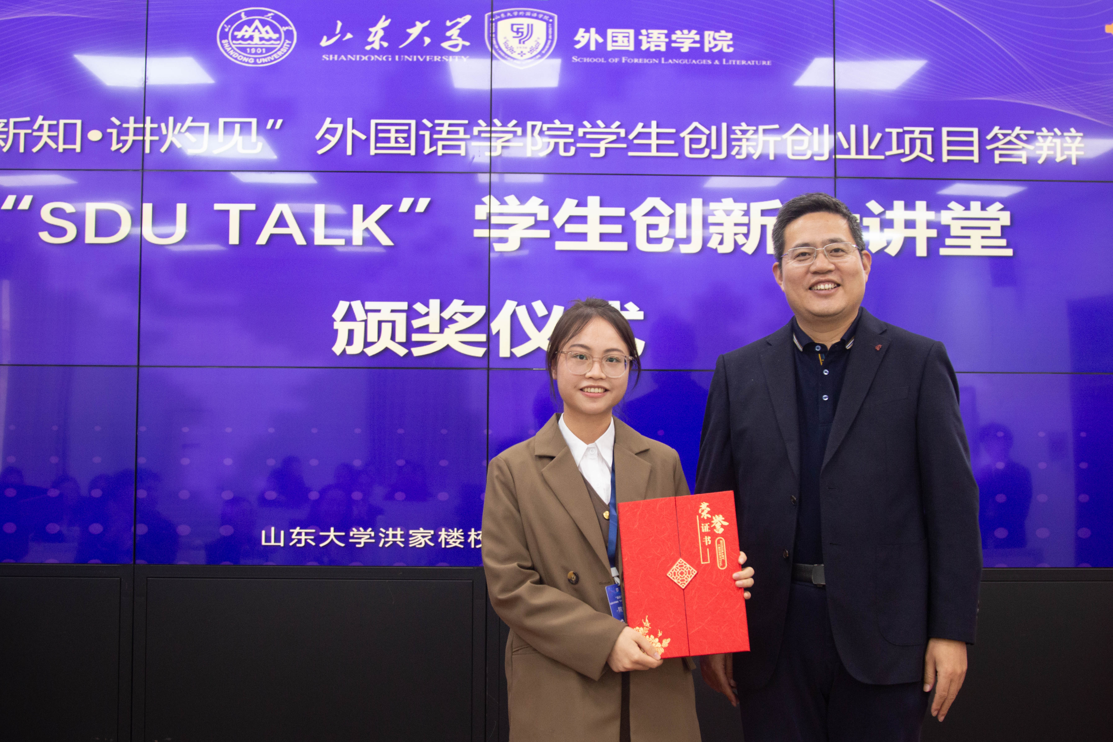 “SDU TALK”学生创新大讲堂演讲汇报中,各团队紧扣项目主题,从研究背景、过程、预期成果到总结反思几个方面进行全面介绍,汇报突出项目的创新点和特色,汇报人言语简洁、逻辑清晰全方位展示了项目成果。评委们从认知维度、创新维度、价值维度、讲述效果四个方面进行综合评分,评选出获奖团队并进行颁奖。