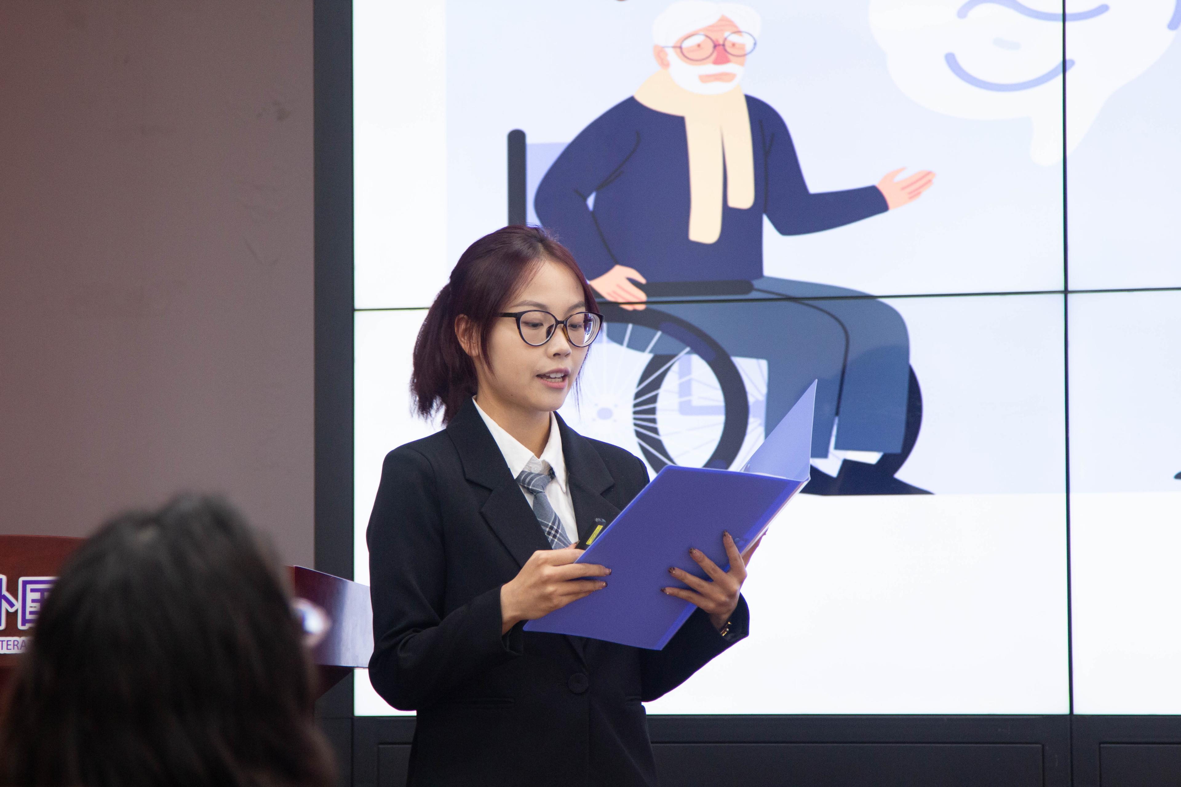 威廉希尔中文官方网站党委书记刘华,党委副书记魏鲁鸿,外语应用与全球胜任力提升创新教育平台负责人、应用英语系教授高云,应用英语系教师王亚琪,团委书记朱蕾,各年级辅导员出席本次答辩会并担任评委,100余名本科生到场观赛。