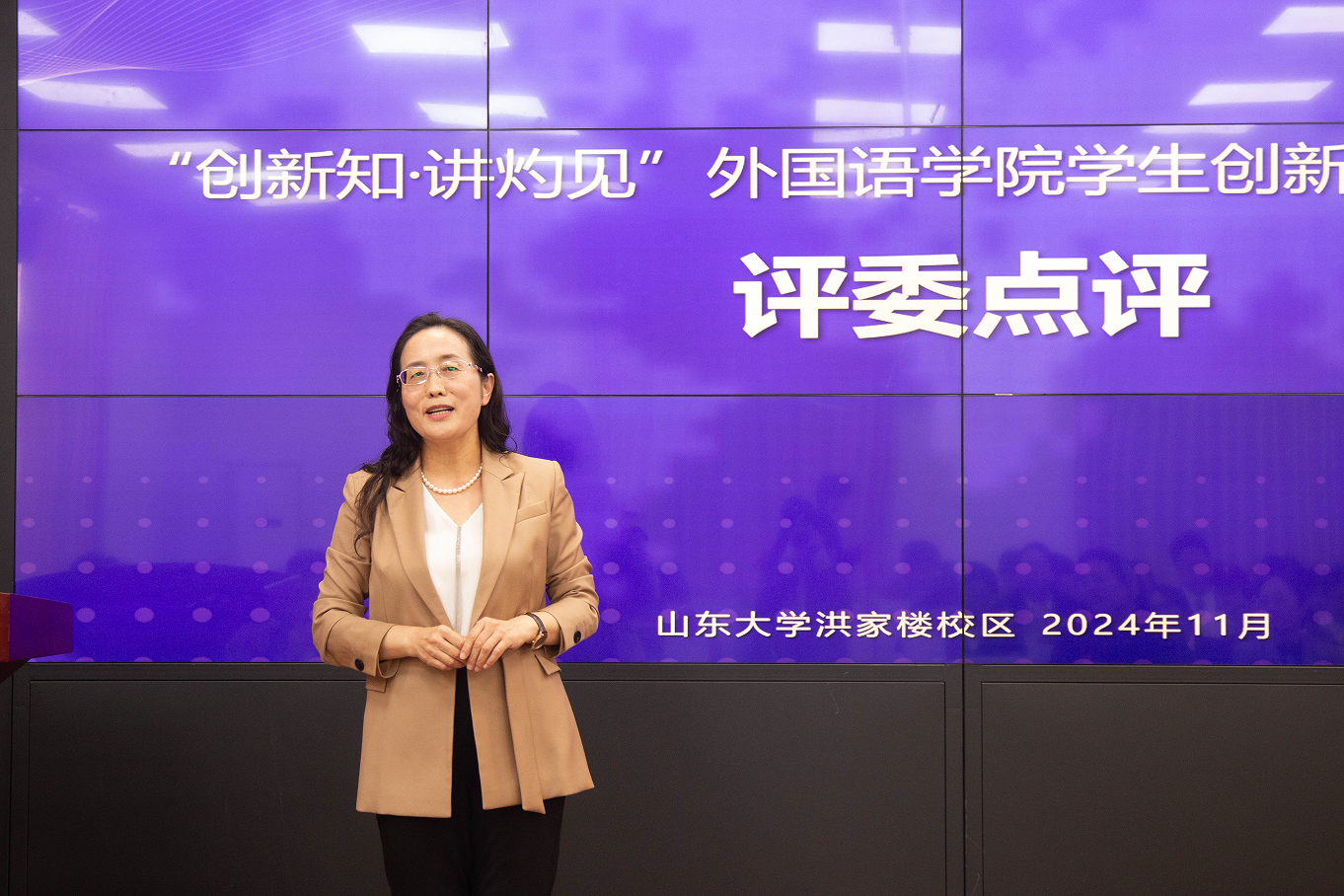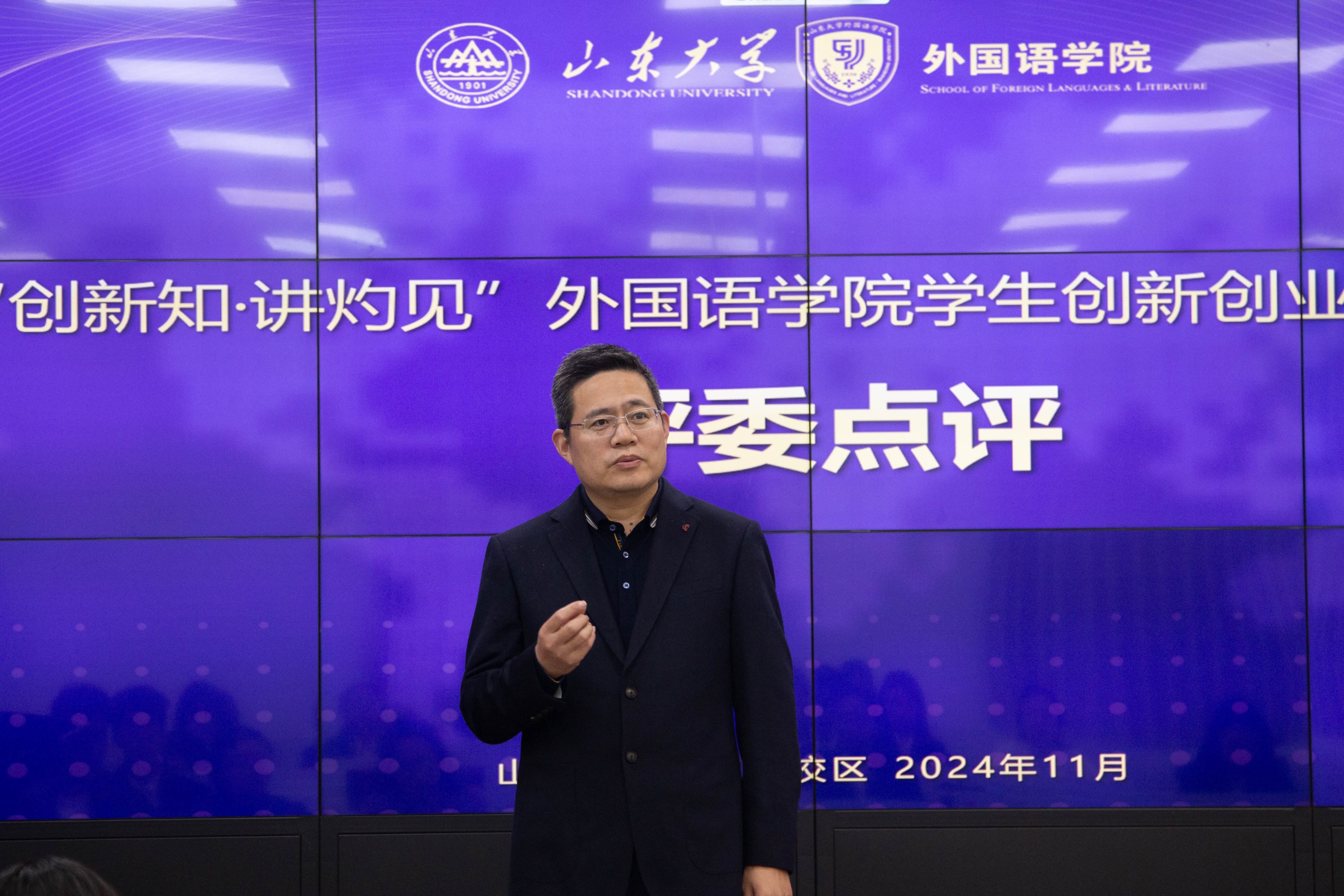 在评委点评环节,魏鲁鸿表示所有参赛选手都展现出了外院学子良好的精神风貌和卓越的创新能力,希望同学们能够继续弘扬创新精神,厚植家国情怀,锻造过硬专业本领,从外语的角度去思考,突出专业特色,打造具有外语特色的创新创业项目。高云对项目进行了深入细致的点评,既肯定了项目的亮点和成果,也指出了存在的问题和不足,并从多个方面给出建设性建议