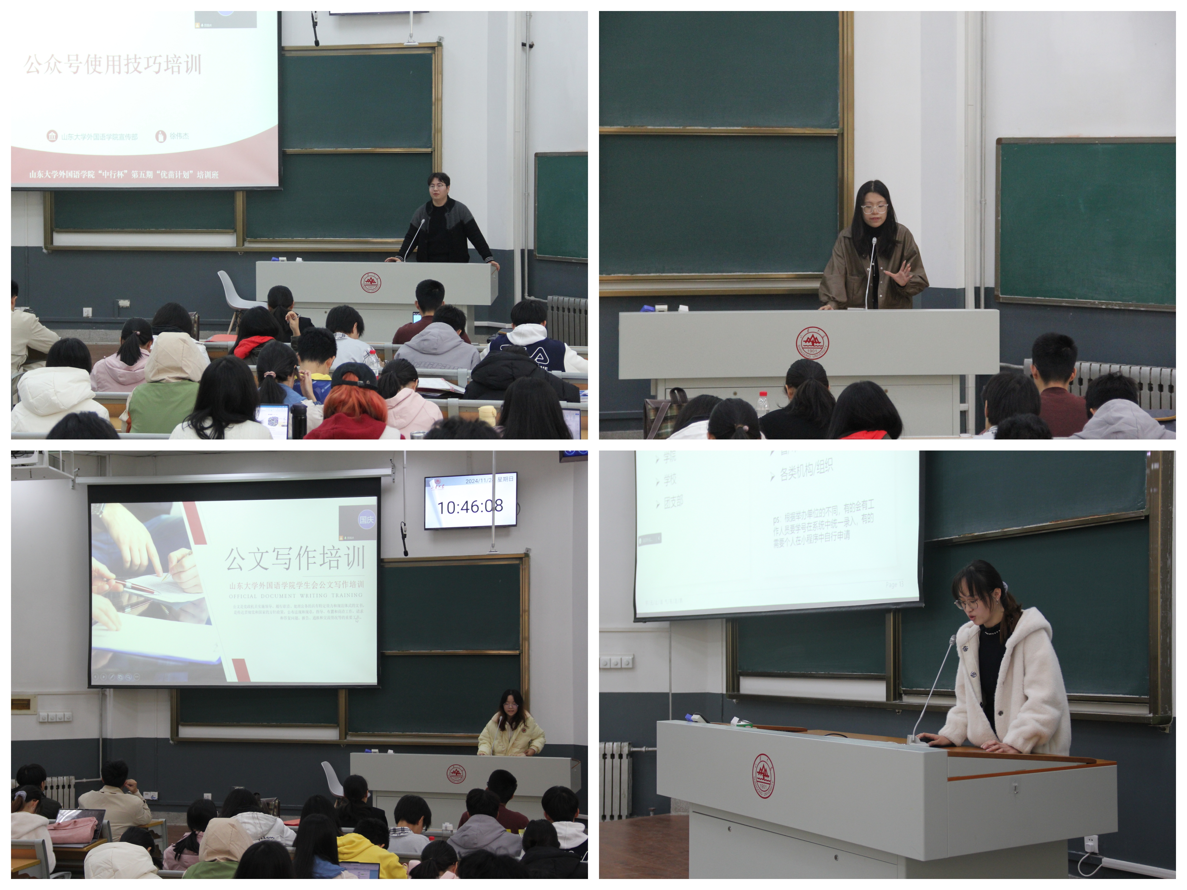 学生会学生骨干综合能力提高培训班顺利开展。研究生辅导员刘婷婷围绕新闻理念、新闻写作、新闻摄影三部分展开培训,她点明新闻工作应注重政治性、时效性、真实性、服务性、准确性五个原则,从标题、导语、主体、结尾四方面详尽论述新闻写作注意事项,并借助新闻照片实例,生动讲解了拍摄注意事项。学生会骨干成员就公文写作规范、摄影技巧、推文编辑、拓展培养系统操作等板块进行了全面细致的分享,在场同学受益匪浅。