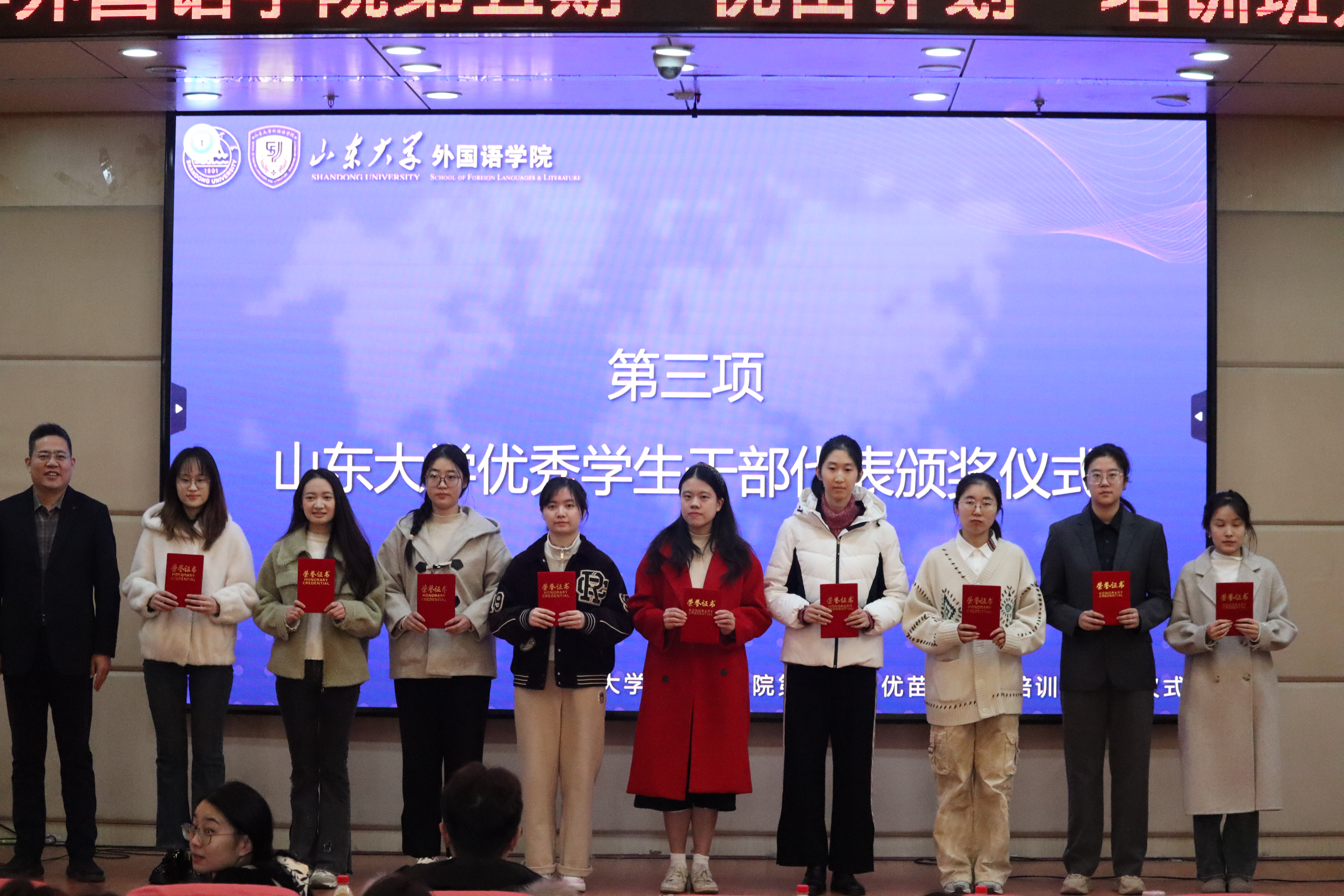 开班仪式上,威廉希尔中文官方网站党委副书记魏鲁鸿为优秀学生干部代表颁奖并做专题讲座。他深刻剖析了学生干部的角色定位、职责使命与实践路径,强调学生干部应锤炼政治觉悟,强化大局意识,勇挑责任重担,严守纪律底线,自觉成为有觉悟、守规矩的表率,并勉励同学们珍惜本次培训机会,全面提升综合素养,共同推动学院学生工作良好发展。优秀学生代表依次发言,分享学生工作中的心路历程和成就感悟,为新任骨干树立榜样。山东省优秀学生干部获得者孙雅茹围绕自身成长收获和服务经历讲述了对学生工作的认识和体会,鼓励同学们争当同学身边的服务者,勇做自我提升的践行者,甘为团队前行的推动者。