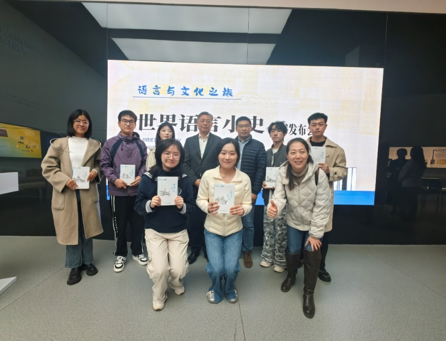 11月30日下午,研学团各成员参加了上海外语教育出版社举办的“外教社世界语言小史丛书”发布会。在作者发言环节,多位专家代表分享编写经验,交流研究成果,展望未来规划。在作者互动与分享环节,四位作者与研学团成员分享了各自撰写分册过程中的艰辛与收获,同学们积极提问,踊跃发言,深刻认识到语言不仅是沟通的工具,更是文化与历史的重要载体。在发布会的最后,各位作者为研学团的同学们签名赠书并合影留念。