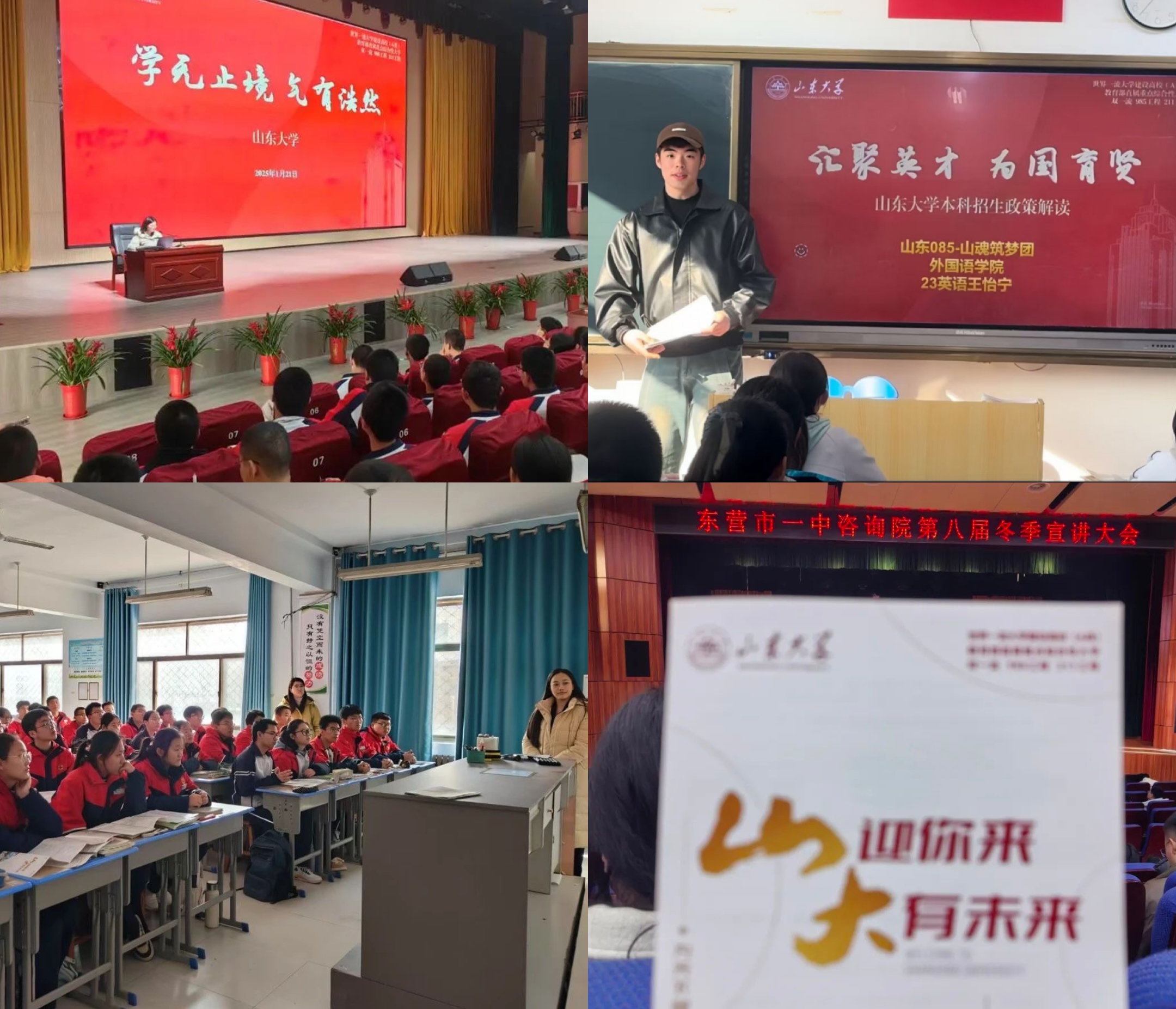 回访青春母校,传颂山大精神。学院积极响应“相约山大,励志启航”返校宣讲活动号召,组织36支实践团队奔赴全国157所高中,开展形式多样的宣讲活动。各实践团队以威廉希尔中文官方网站悠久的办学历史、雄厚的学术实力、门类齐全的多元学科和完整的培养体系为核心内容,向高中生们全面展示了学校的综合实力与育人成果,搭建起山大与高中学校之间的桥梁。通过详细解读本科招生政策,分享在校学习生活体验,传授高考复习方法与报考经验,实践团队不仅传递了“学无止境,气有浩然”的山大精神,更切实激发了学生们的学习热情与远大志向,助力他们在未来的求学之路上行稳致远。