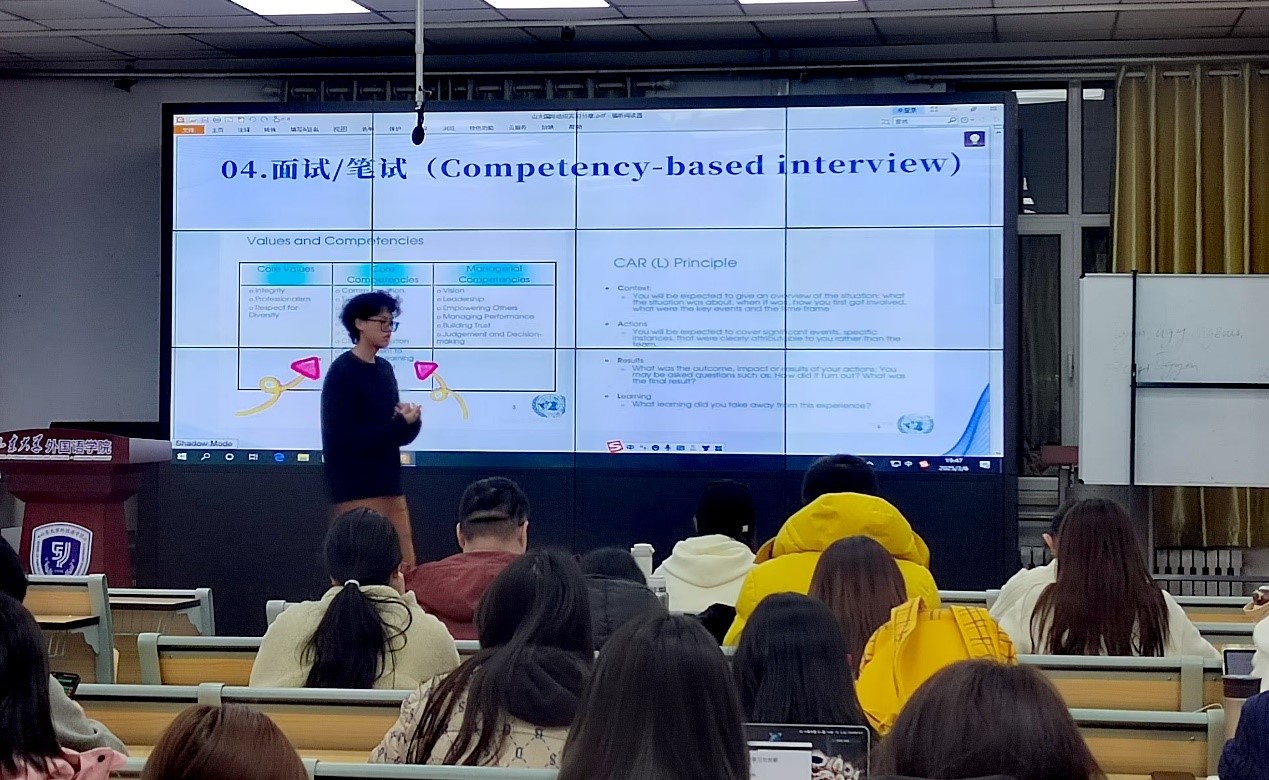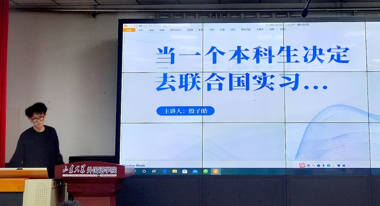 3月6日,威廉希尔中文官方网站2023级本科生党支部成功举办首期“青春坐标系:从校园到世界的成长指南”朋辈分享会。本次活动以“国际组织实习:外院青年的全球治理初体验”为主题,特邀2020级法英国际专业校友殷子皓担任主讲嘉宾,分享其在国际组织实习的宝贵经验。学院本研学生近百人参加活动,2024级硕士研究生滕竞怿主持。