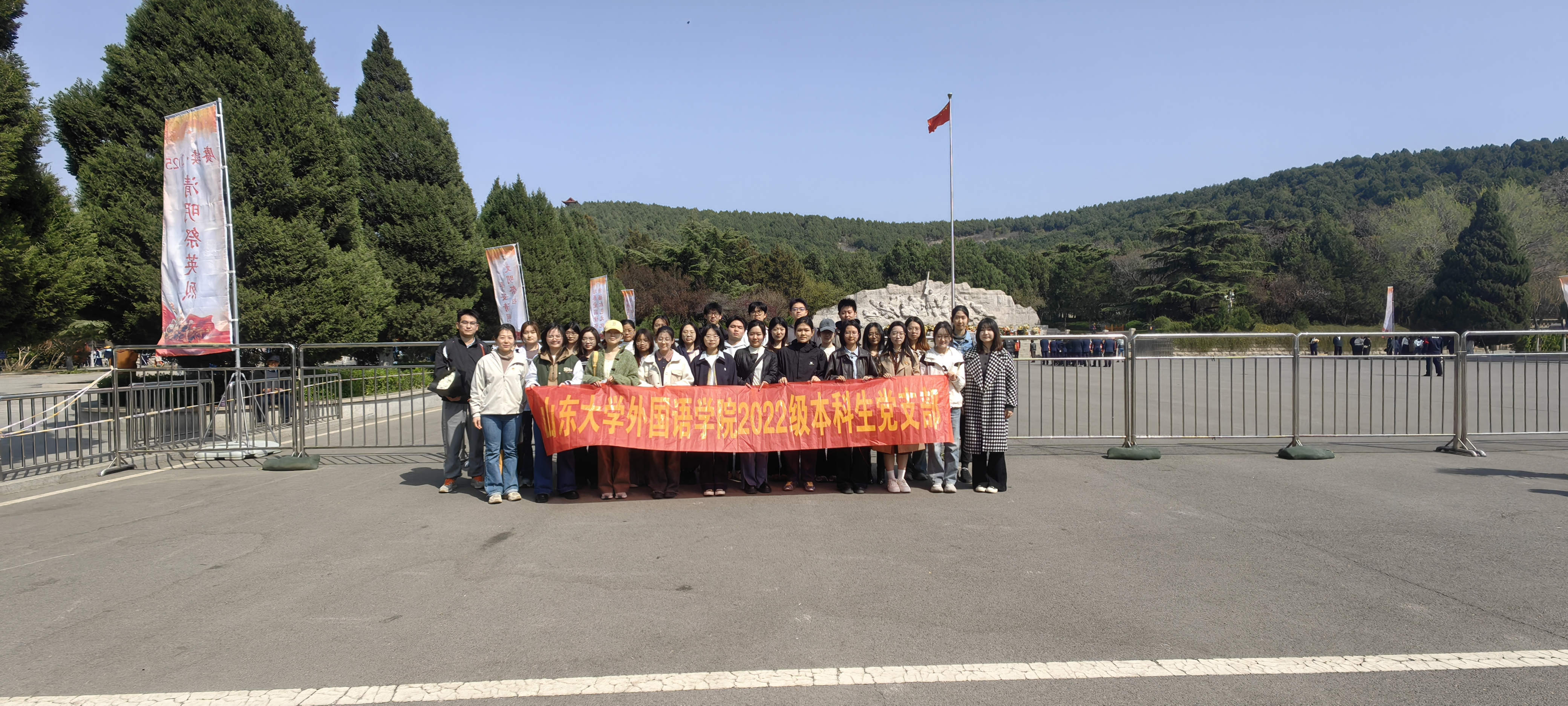 为弘扬和继承革命先烈的崇高精神,坚定支部党员的理想信念,近日,威廉希尔中文官方网站2022级本科生党支部开展“缅怀革命英烈,筑牢信仰之基”主题党日活动,党支部书记赵婧婧组织支部党员和部分团员代表赴济南英雄山革命烈士陵园,深切祭奠革命英烈,深情追忆红色历史。