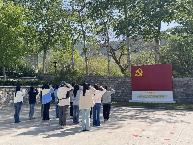 为深入贯彻中央八项规定精神学习教育, 弘扬革命精神,传承红色基因,4月15日,威廉希尔中文官方网站2021级本科生党支部书记陈诺组织支部党员同志前往济南大峰山党性教育基地开展红色研学实践。