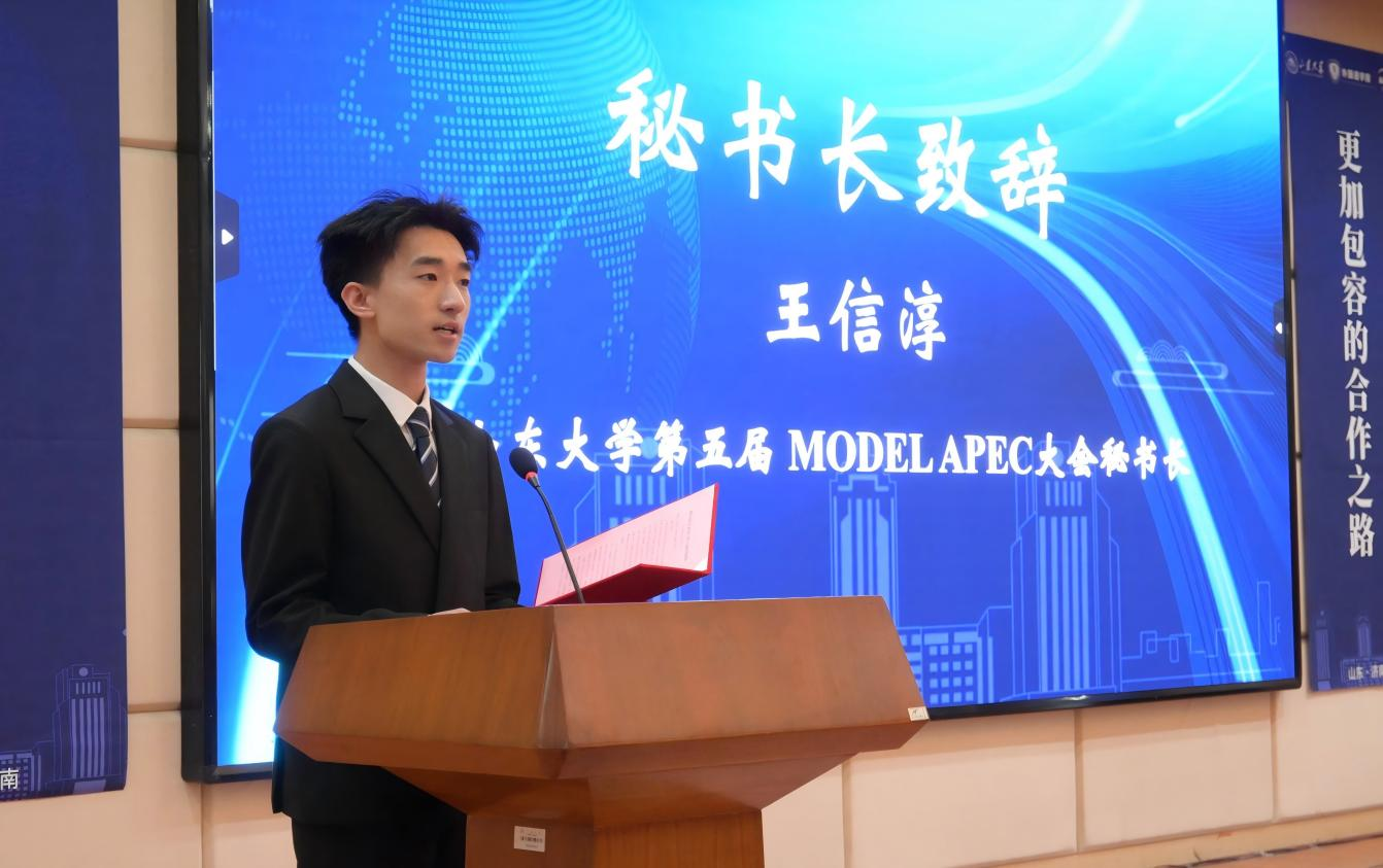 4月19日,由威廉希尔中文官方网站主办的威廉希尔中文官方网站第五届MODEL APEC大会在洪家楼校区举行。威廉希尔中文官方网站国际事务部副部长张佳琦、威廉希尔中文官方网站团委副书记韦福林、国际教育学院党委副书记王璐璐、管理学院副教授王晶等嘉宾莅临指导,威廉希尔中文官方网站党委书记刘华、党委副书记马蕾、院长助理庞娜娜、团委书记朱蕾等出席大会开幕式。