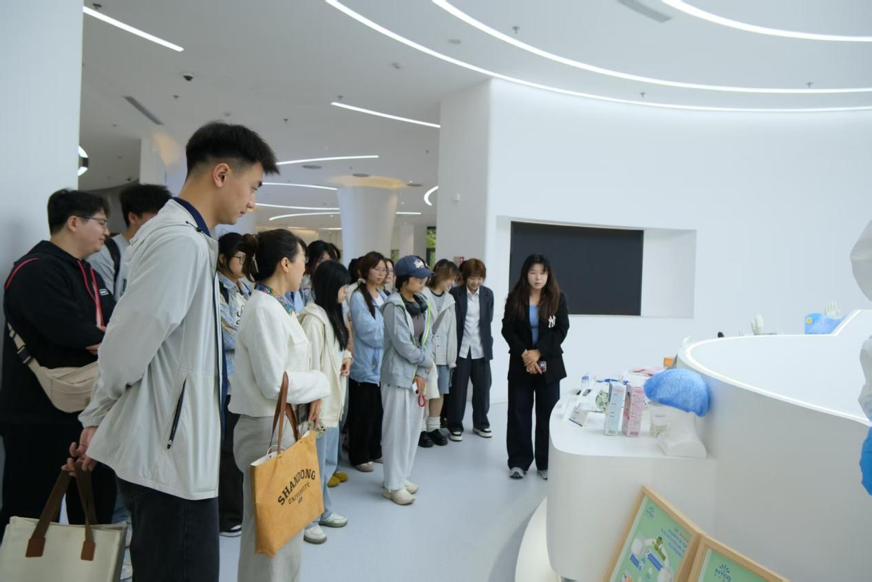 在参观过程中,师生们沉浸式体验了企业真实工作场景,公司员工各司其职、专注投入、积极向上的精神面貌给同学们留下了深刻印象。在企业展厅,师生们依次参观了企业丰富多样的产品,包括医护用品、康养器具、环保产品等,了解了企业在产品研发上的卓越成果。在生产车间,师生们实地了解了手套生产过程和环保再生产品的加工制作流程,深刻体会到现代化生产的精密与高效,打开了认识行业发展的新视野。