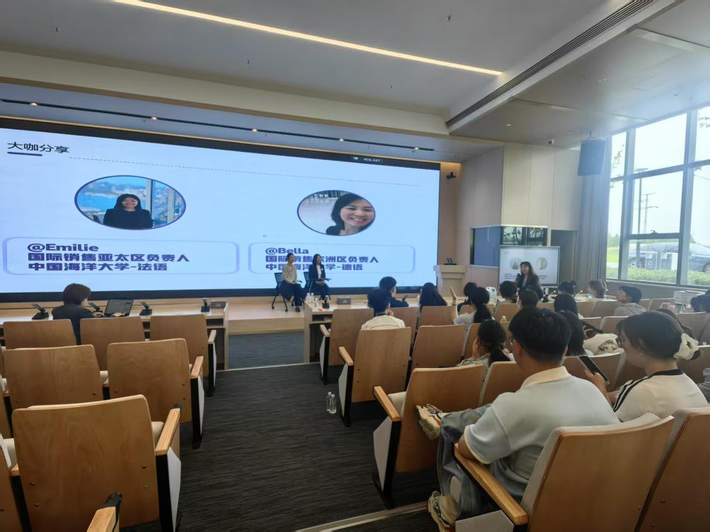 在宣讲交流环节,陈梦竹、许皓慈结合企业宣传片,分别详细介绍了企业的发展历程、组织架构、业务范围等基本情况,着重讲解了校招生培养和发展体系,让同学们对企业的用人理念和人才培养模式有了清晰的认识。往届国际销售岗校招生结合自身经历,分享了工作心得,为同学们提供了生动的职业发展借鉴。互动答疑环节中,英科医疗国际销售岗位负责人针对学生关注的职业发展、岗位要求等问题进行了耐心解答,让学生们看到了企业的广阔发展前景。让同学们看到了公司在行业内的优势以及广阔的发展潜力。英科再生国际销售岗位负责人结合自身工作经验,为同学们讲解了外贸岗位的发展趋势以及职业成长路径,为同学们未来的职业选择提供了有益的参考。