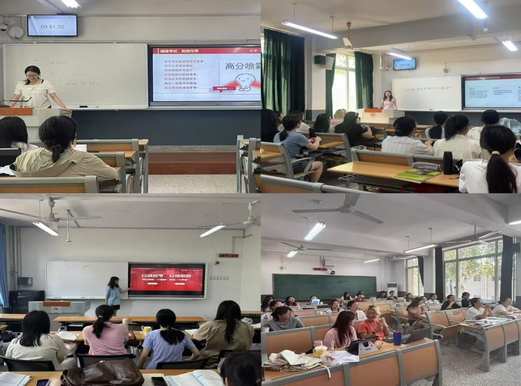 班级落实:形式多样,注重实效。6月13日至20日,各班级相继召开“诚信考试”主题教育班会,制度学习与警示教育,同学们集体学习考试规章制度,通过剖析真实案例,深刻认识违规行为的危害性;创新互动与强化认知:班长们积极创新形式,增设互动环节:“经验共享”,邀请优秀学生代表分享备考策略,涵盖时间管理、复习技巧及心态调整;“答疑互助”,组织现场讨论,解答“如何克服焦虑”“高效记忆方法”等考前常见问题,现场氛围热烈。
