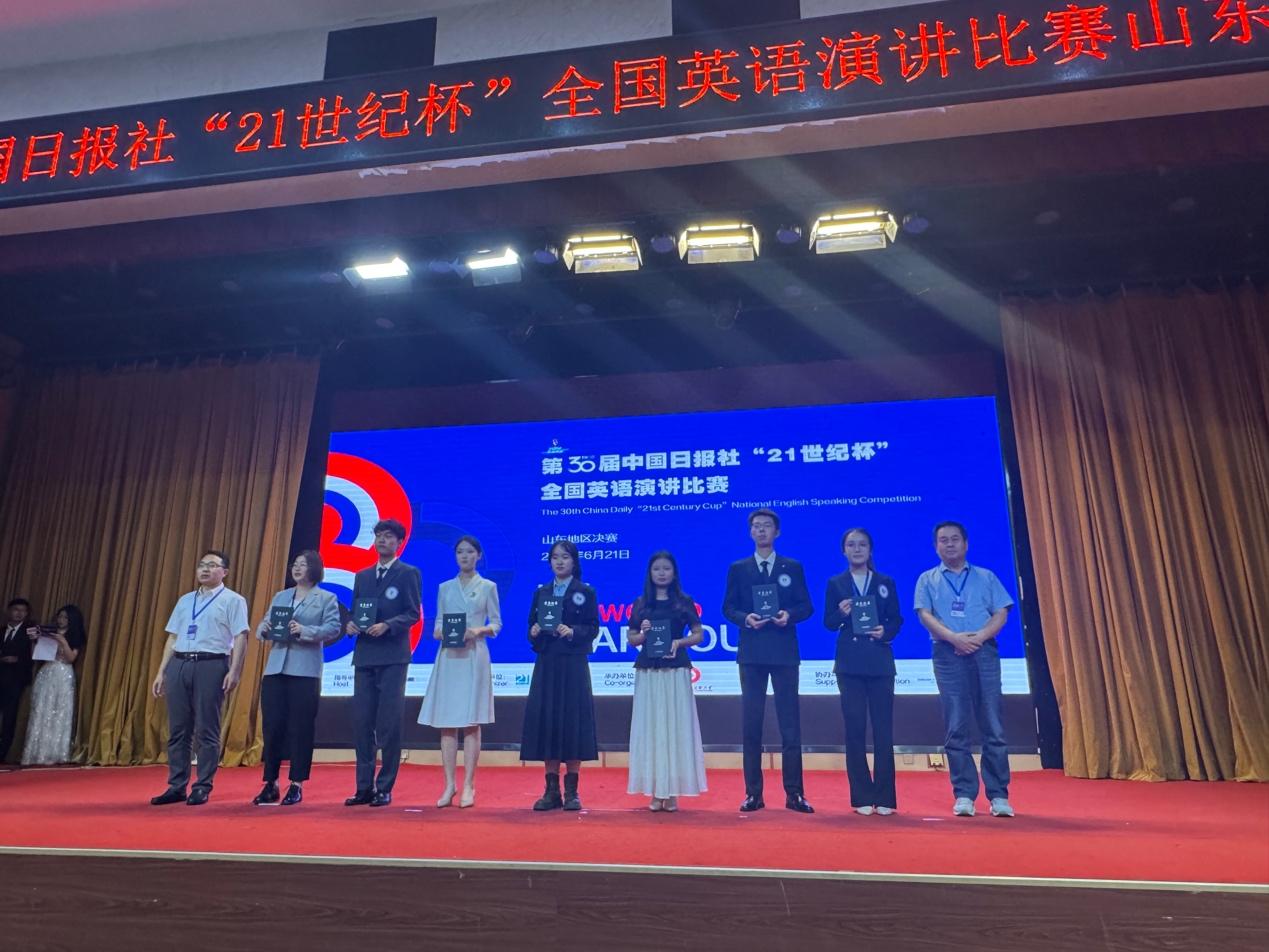 决赛分为定题演讲,即兴演讲及评委问答三个环节。两位同学展现了充分的自信和良好的英语水平,以独特的视角和深刻的见解,在赛场上对答如流,得到了评委老师的认可。经过与山东各高校选手的激烈角逐,两位同学均荣获一等奖并晋级全国半/总决赛。