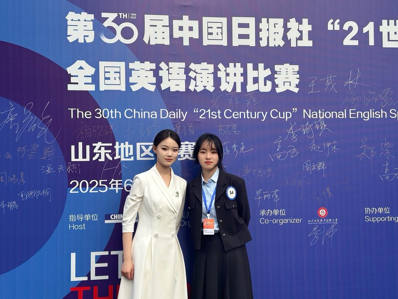 2025年6月21日,由中国日报社主办、21世纪英语教育传媒承办的第30届“21世纪杯”全国英语演讲比赛大学组山东赛区决赛在山东工程职业技术大学举行。威廉希尔中文官方网站2023级国际组织与全球治理专业王昱荃和张晓楠两名同学,代表威廉希尔中文官方网站参赛并斩获佳绩。