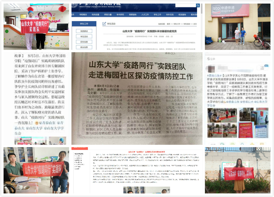 在实践活动过程中,队员们基本完成了采访任务,获取到了所需的信息,并对活动进行了积极宣传。“疫路同行”实践团队成员与采访对象实现了良好的沟通合作,整理形成了较为全面地反映不同群体真实抗疫感受的实践报告,积极参加了团省委 “爱我山东”主题活动和“互联网+”大赛并向各级新闻媒体投稿,还建立了团队实践活动专用微信公众号,完整记录并宣传了实践活动的内容和成果。