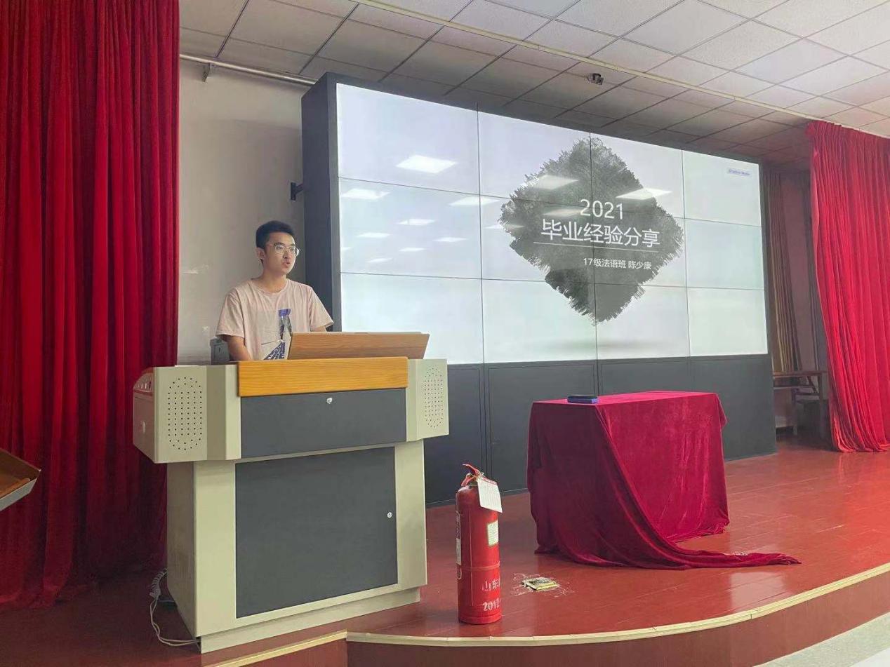 分享会开始后,王怡宁向大家简要介绍了两位分享人以及今天分享会的主要流程。 在分享会的第一个环节,叶军以三个关键词为指引,分享了自己在本科学习以及就业过程中的经验和心得。他与大家分享了在本科四年的学习过程中如何通过全面发展为将来的就业打下坚实的基础,向大家仔细地介绍了自己在准备简历过程中的经验,除此之外,叶军还与大家深入分享了自己在完成求职之后对于公司、人际关系以及个人发展的全面思考。接下来,陈少康与大家分享了自己选择工作以及求职的过程,包括自己的道路选择、心态调整以及自身规划等。陈少康还毫无保留地向同学们介绍了自己在求职过程中积攒的宝贵经验,例如面试技巧以及签约时的注意事项,并且与大家分享了自己在求职过程中以及完成求职之后的自我感受,让同学们对求职和工作有了更加深入的了解。在接下来的提问回答环节,在场的各位同学都积极提出了自己对于求职的问题和困惑,最后,两位同学也为即将步入求职环节的18级同学送出了诚挚的祝福。