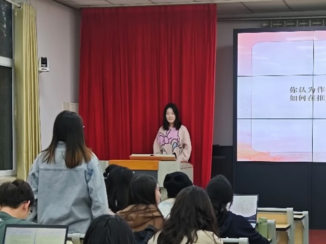 在讨论环节,针对新时代的外语人应该如何讲好中国故事、在推动中外文化交流互鉴中发挥更大的作用这个问题,同学们彼此分享了自己的看法。“我认为讲好中国故事的核心在于精准翻译和传播。我们需要不断提升自己的语言能力和翻译技巧,让外国读者或听众能够原汁原味地理解中国的历史、文化、社会现象。”“讲好中国故事要求我们具备高度的语言转换能力和跨文化沟通技巧。我们要通过不断的实践和学习,提高自己的听力理解、记忆能力和快速表达能力,准确无误地传达中国声音。”“讲好中国故事需要我们具备国际视野和跨文化交际能力。我们应该积极参与国际学术会议等交流活动,与来自不同国家的人进行面对面的交流。”