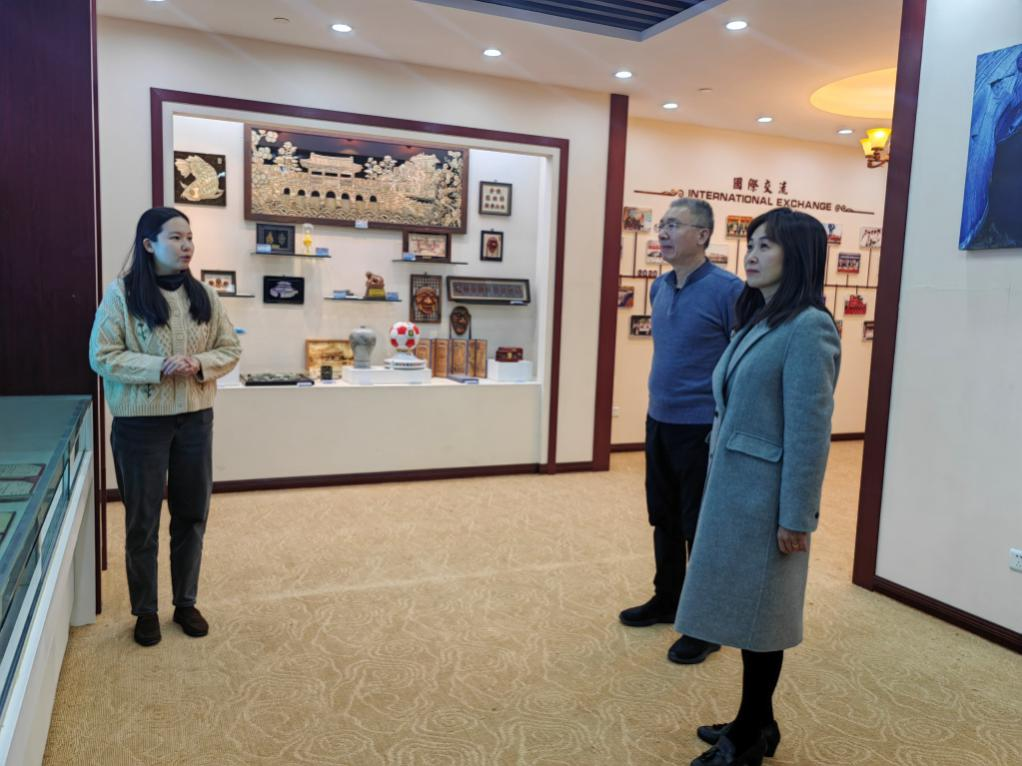济南市政府参事李玉陪同马蕾一行首先参观了济南市外事廉政展厅,详细了解了济南与国际友城的交往历程。展厅中陈列的各类外事展品讲述了济南与多个国家友城建立友谊的生动故事,展现了外事工作在促进国际交流与合作中的重要作用。参观过程中,双方就如何更好地利用外事资源服务地方经济社会发展进行了交流。