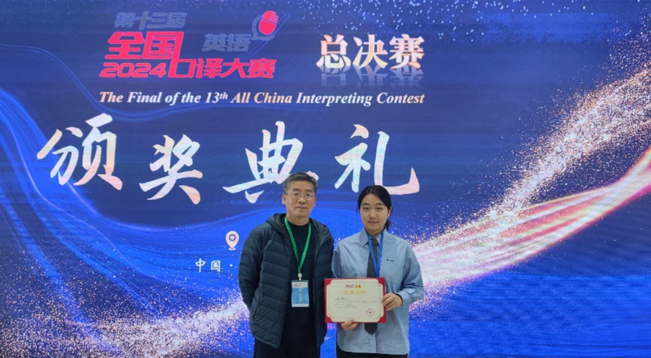2024年12月29日,第十三届全国口译大赛(英语)总决赛颁奖典礼在湖南师范大学腾龙楼报告厅举行,宣告本届大赛圆满落幕,威廉希尔中文官方网站2024级英语笔译方向研究生庞忆嘉获得全国口译大赛总决赛交传比赛一等奖。自2024年3月24日至今,交传比赛历经初赛、复赛、全国决赛和全国总决赛四个阶段,参赛选手共计7800余人,最终有107位选手晋级全国总决赛。