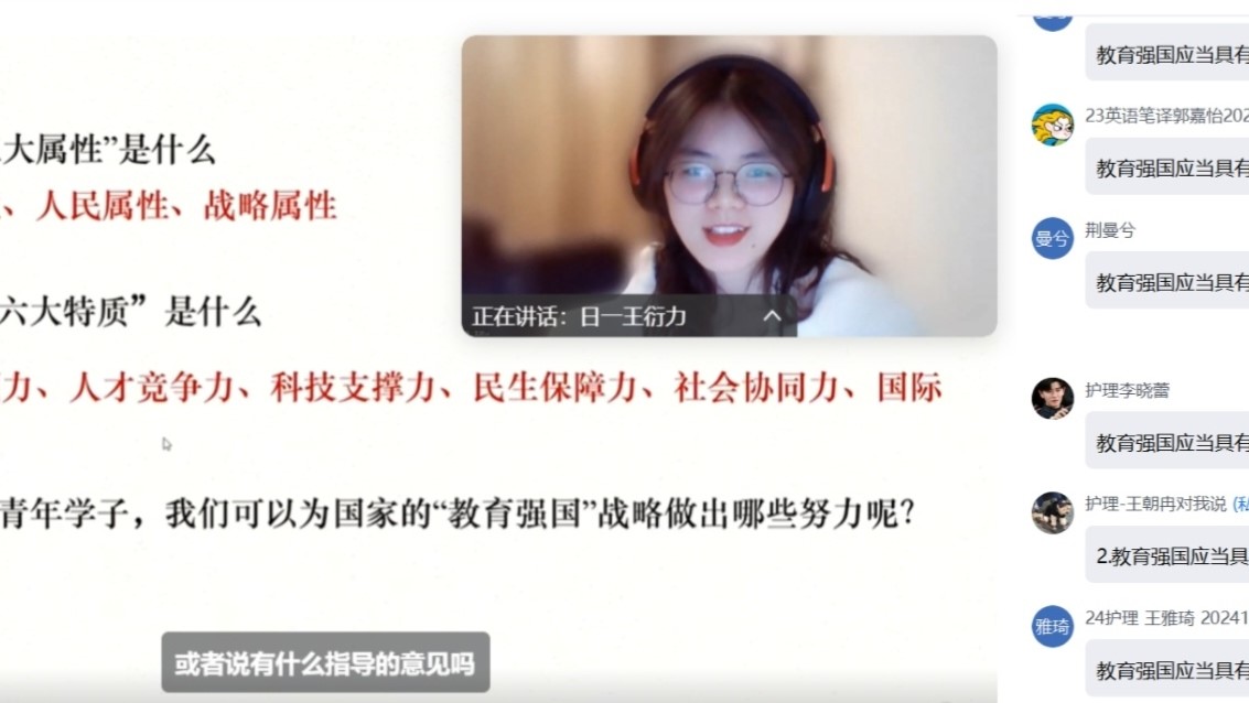 宣讲会上,“青音”宣讲团成员王衍力介绍了教育强国的基本概念,强调教育是强国建设、民族复兴之基,指出教育在提升国家竞争力、满足经济社会发展和人民群众需求方面发挥着关键作用,详细梳理了“教育强国”概念的发展历程,重点阐述了教育在强国建设、民族复兴伟业中的战略地位,介绍了教育强国的目标设定和重点任务。
