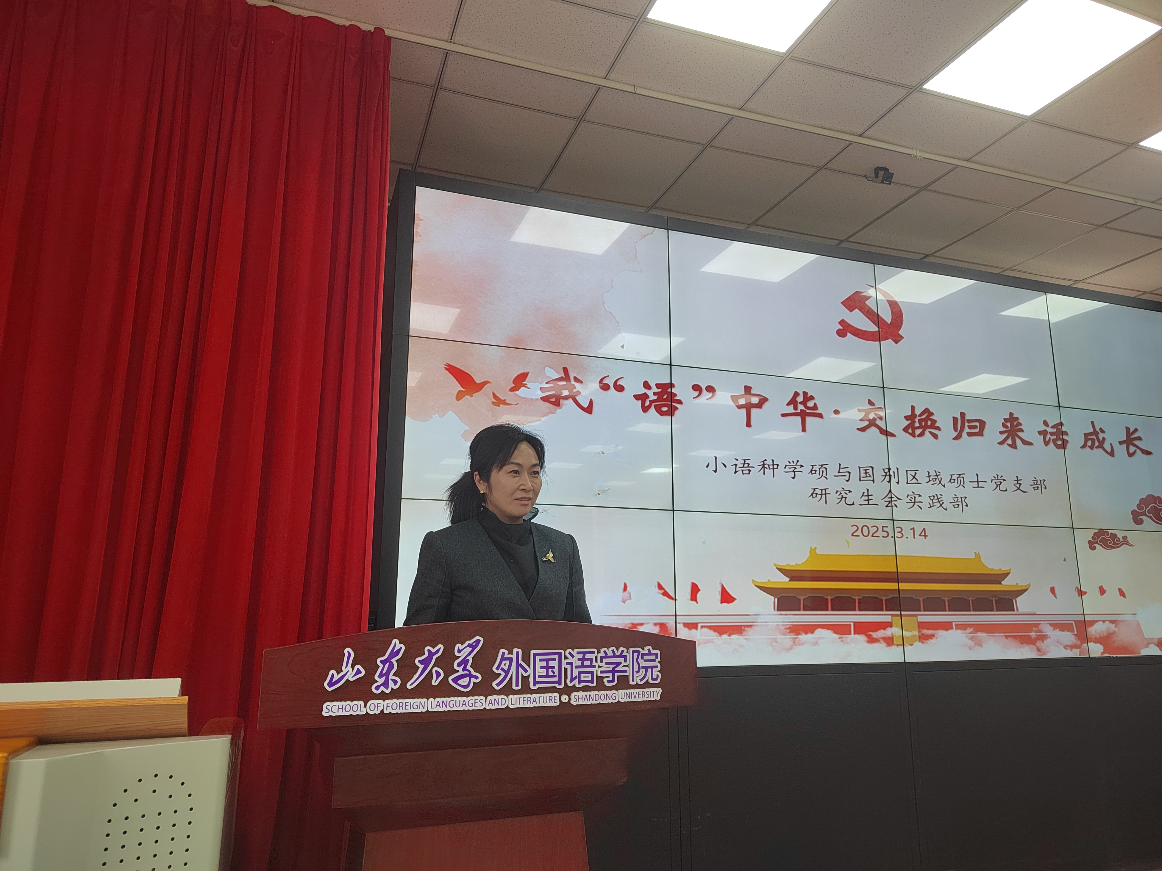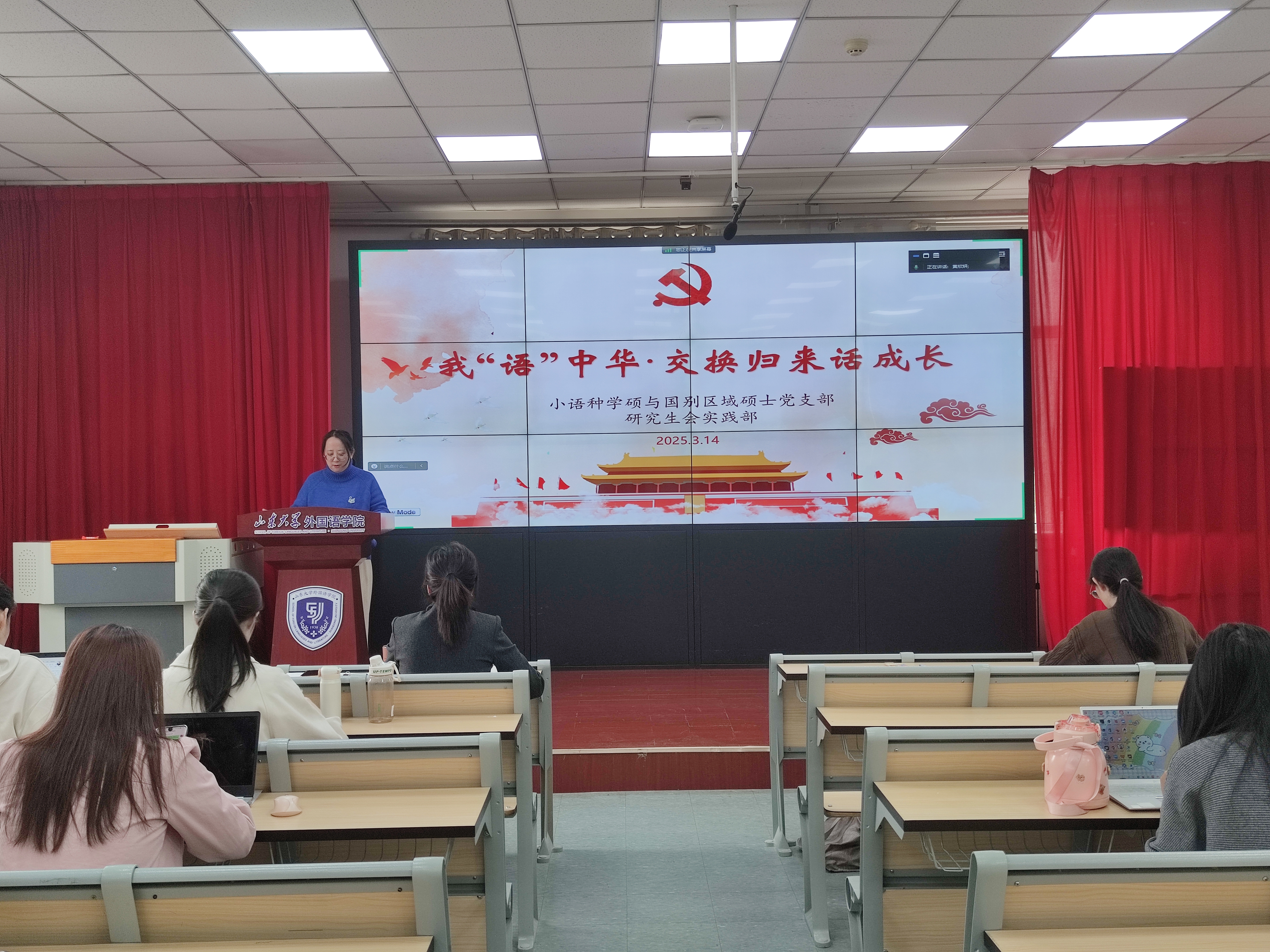 为深化理论学习、赓续文化基因、促进实践转化,引导外语学子在守纪律、强本领、担使命中成长为兼具家国情怀、全球视野、专业本领的复合型人才,3月14日下午,威廉希尔中文官方网站研究生举办我“语”中华·交换归来话成长活动。威廉希尔中文官方网站党委副书记马蕾,学院党委委员、国别与区域研究团队党支部书记蒋颖,威廉希尔中文官方网站辅导员张新苑出席活动,小语种学硕与国别区域硕士党支部副书记黄欣妍主持活动。