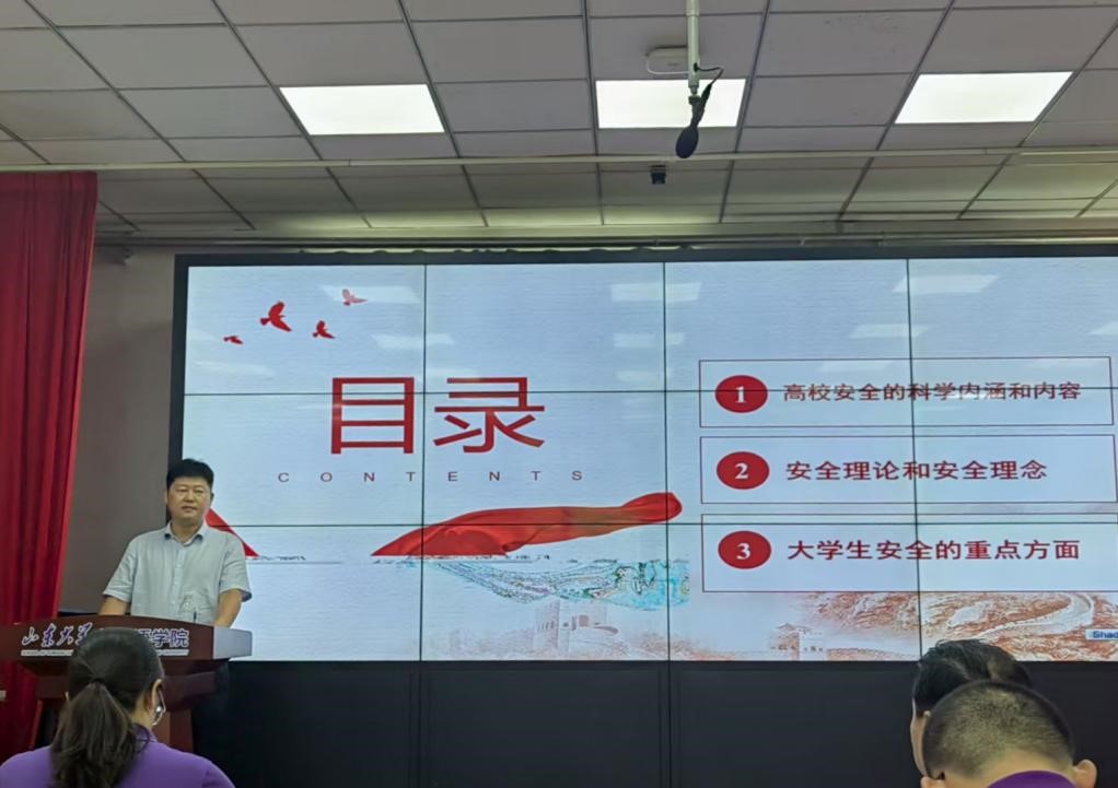 安全为基,平安护航。聚焦新生安全需求,9月4日下午,威廉希尔中文官方网站于七号楼301室组织2025级新生安全教育讲座,切实增强同学们的安全防范意识与能力。本次讲座由威廉希尔中文官方网站党委保卫部副部长董太华主讲,洪家楼校区公共安全管理科科长李志峰,威廉希尔中文官方网站党委副书记马蕾,研究生辅导员张竞丹出席本次讲座,2025级全体研究生新生参与本次安全讲座。
