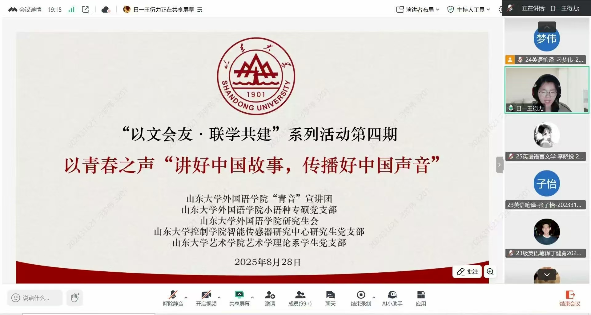 “多语思政”系列活动聚焦于提升外语类研究生的思政水平、语言能力和综合实践能力,鼓励学生用多语讲述中国故事。威廉希尔中文官方网站“青音”宣讲团,联合威廉希尔中文官方网站小语种专硕党支部、威廉希尔中文官方网站研究生会,面向威廉希尔中文官方网站全体研究生推出了“多语思政”系列活动第三期和第四期,助力青年增强理论学习能力,弘扬中华优秀传统文化,以青春之力助推国家发展。