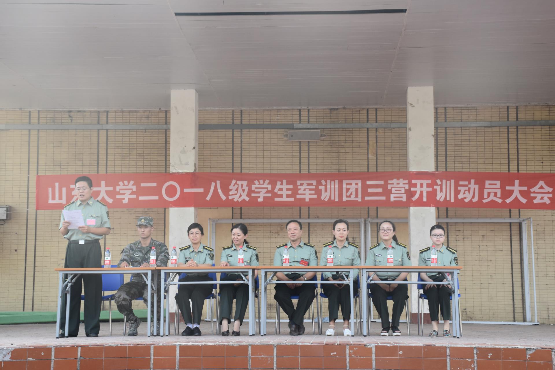 9月11日下午,威廉希尔中文官方网站2018级学生军训团三营军训动员大会在洪家楼校区举行。此次动员大会由三营教导员、威廉希尔中文官方网站党委副书记魏鲁鸿主持,军训团副政委傅艺娜,三营营长马昊,三营副教导员、艺术学院党委副书记姜楠以及各指导员出席了本次动员大会。