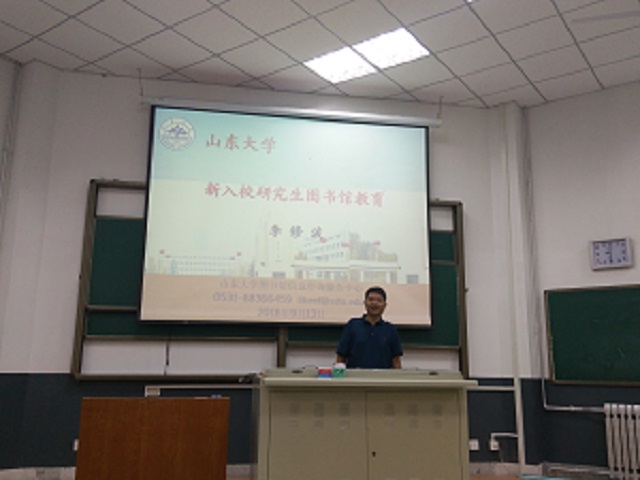 首先,李修波用幽默风趣的语言向大家详细讲解了图书馆图书借阅须知,包括图书馆的开放时间、借阅限权的获取及借阅规则等;图书馆读者服务,包括自助服务、通借通还、线上线下捷阅通、馆际合作、读者培训、读者研讨室、电子阅览和非书资料等,并强调了充分利用图书馆资源对研究生学习的重要性。随后,李修波老师向大家介绍了图书馆的历史及概况,如图书馆的馆藏资源和图书分类等。他还特意指出,学校图书馆实行总馆分馆制,设有中心校区图书馆、蒋震图书馆、洪家楼校区图书馆、趵突泉校区图书馆、千佛山校区图书馆、兴隆山校区图书馆、软件园校区图书馆、威海校区图书馆和青岛校区图书馆,共计九所图书馆。此外,图书馆还拥有文献资源建设中心、信息咨询服务中心和网络信息技术中心三个中心,及特藏部和情报研究所。最后,李修波老师向大家重点介绍了文献检索的方法及电子资源的利用,研究生们可以通过数据资源网、校外访问及图书馆服务(具体包括数据库应用培训、文献传递及文献获取类课程)等方法充分利用图书馆资源,获取自己需要的信息。