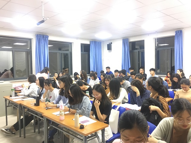9月27日,威廉希尔中文官方网站在洪家楼校区举办了英语文学及口笔译专业经验交流会。来自2017级英语语言文学方向的王军霞和张慧学姐、2017级英语笔译专业的陈泽茹学姐、以及2017级英语口译专业的陈雅娴学姐担任主讲人,学术部李青媛和刘河星主持,2018级英语语言文学和英语口笔译方向的同学参加了此次交流会。