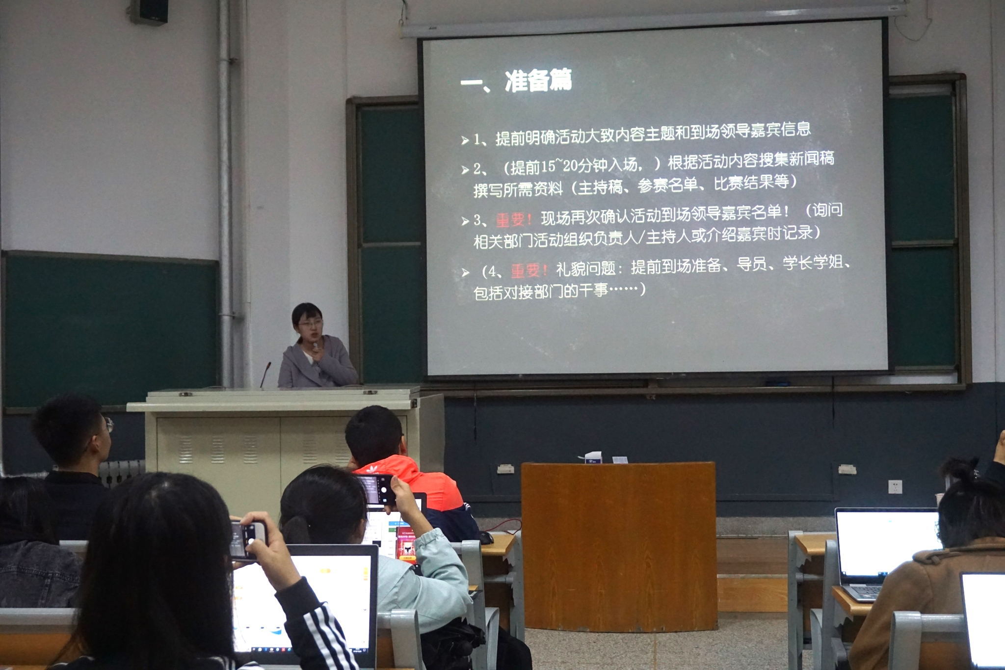 10月20日晚,新媒体培训会在洪家楼校区公教楼举行。此次活动,旨在对18级文体宣传委员和学生会骨干进行有关培训。