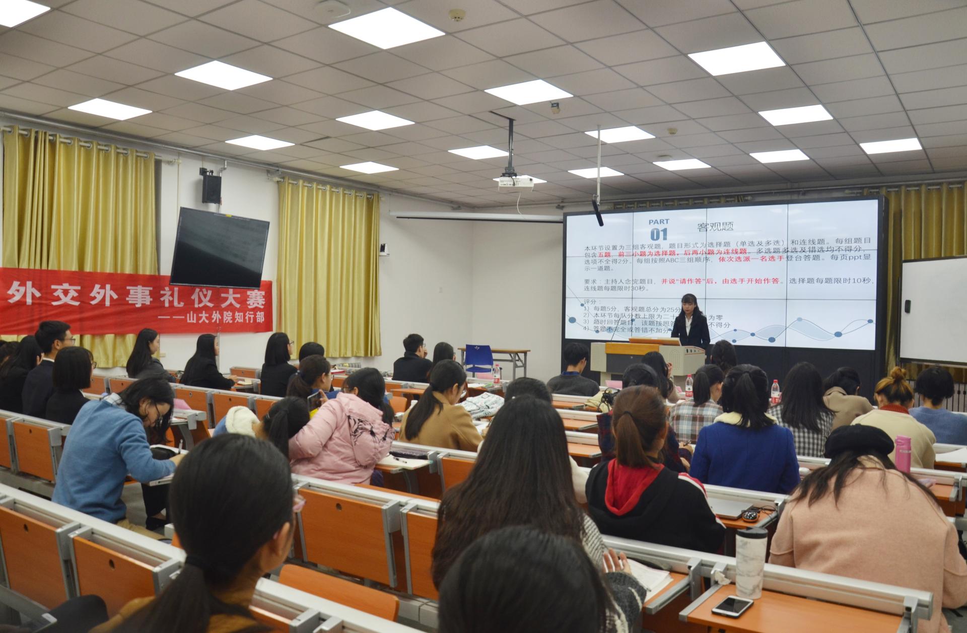 11月11日晚,威廉希尔中文官方网站在洪家楼校区举行了“第六届外交外事礼仪大赛”决赛。国际事务部傅雅文老师,2018级辅导员赵玲,外院第二十一届学生会主席马文啸,原威廉希尔中文官方网站青年发展研究部部长孙惠生、威廉希尔中文官方网站青年思想理论协会荣誉会长宋梓洺担任大赛评委。此次活动旨在增进山大学子对外交外事礼仪的认知。