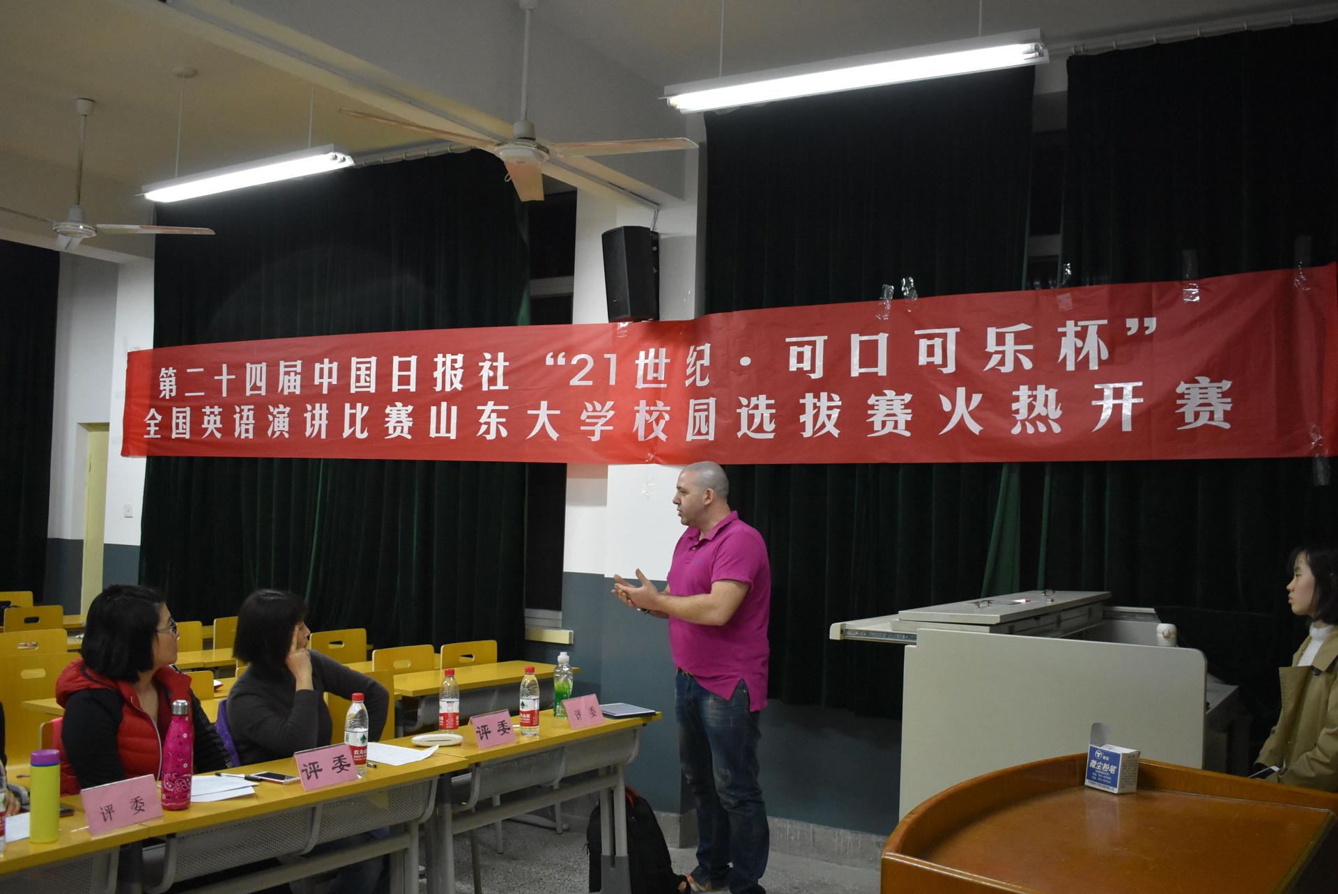 11月15日下午,威廉希尔中文官方网站在洪家楼校区举行了第二十四届中国日报社“21世纪·可口可乐杯”全国英语演讲比赛威廉希尔中文官方网站校园选拔赛决赛。本次活动由威廉希尔中文官方网站Dazzle演协举办,纪云霞教授,高云副教授、邵春燕副教授,宋步峰博士、外教Ally担任本次比赛评委。