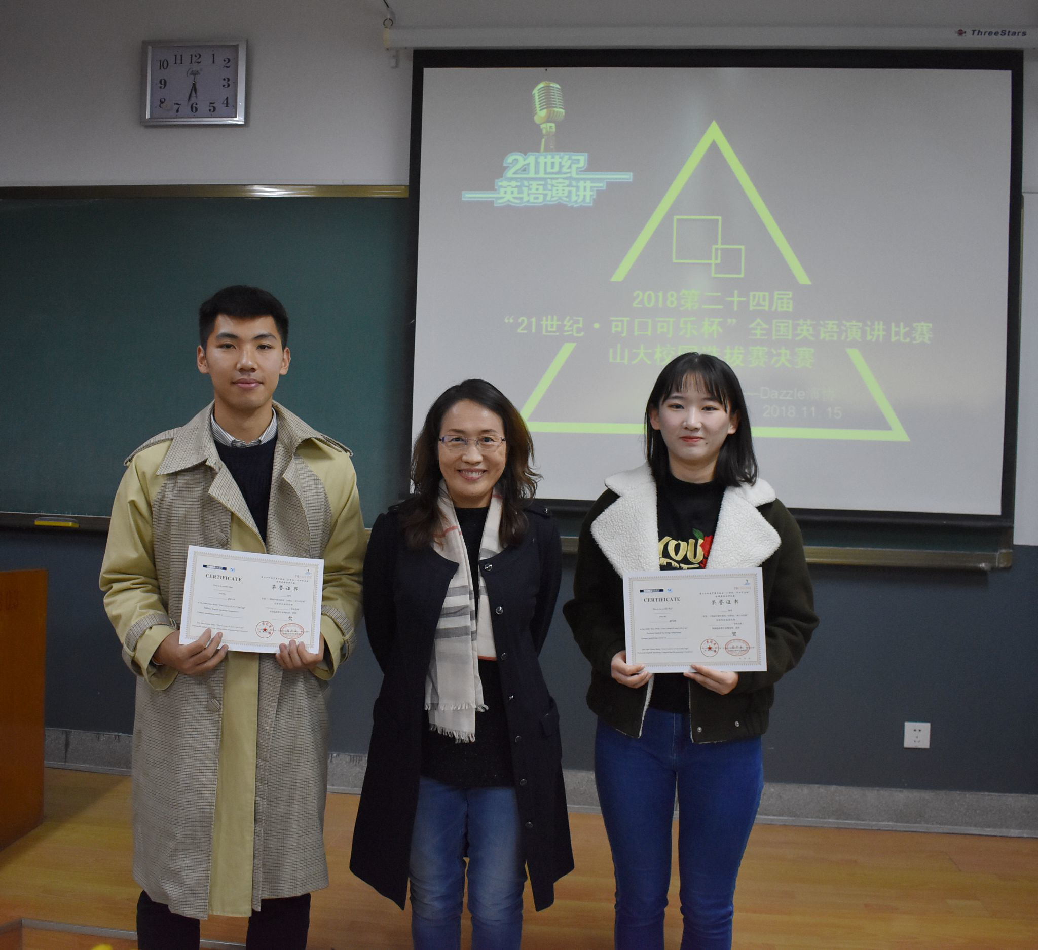 经过评委的讨论与评分后,来自英语专业的刘姿慧和胡嘉昕获得特等奖,即将在今年晚些时候代表威廉希尔官网参加省内比赛,争取参加国家比赛资格。此外,李伟杰和管懿德获得一等奖,徐婷婷、黄佳希和梁潇获得二等奖,张劲草、许帆、李雨晴、宋依雯和刘伟获得三等奖,任珏辰、李浩嘉和任秋昀获得优秀奖。