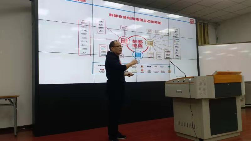 讲座伊始,朱明爱老师对刘学德社长的到来表示了热烈欢迎,并简要介绍了刘学德的个人经历和所获荣誉。讲座正式开始后,刘社长详细介绍了韩都衣舍品牌、韩都衣舍进入中国市场的战略、韩都衣舍的合作方向以及日后韩都衣舍开拓韩国市场的战略等。首先,他讲到韩都衣舍不仅是中国线上时尚第1品牌,更是中韩经济文化交流的平台。韩都衣舍电商集团拥有韩都衣舍、韩都动力和智汇蓝海三个部分。并且,韩都衣舍所独创的二级生态系统概念和韩都衣舍小组制得到了社会各个层面的高度肯定。进而,刘学德社长讲到了进入中国市场的战略,即利用韩都动力和韩都TV入驻中国各大电商平台和微信商城&小程序等,并结合网红直播等形式,接着刘社长展示了CHUU海外旗舰店等一些成功案例。之后,他介绍了智汇蓝海,进行品牌及产品孵化,创造就业岗位。在韩都衣舍合作方向部分,刘社长提到韩都衣舍下一步会与优秀品牌、新闻媒体和媒体网红等进行合作。最后,他介绍了韩都衣舍利用网红直播等形式开拓韩国东大门等市场的战略。在随后的问答环节,刘社长耐心详尽地解答了同学的问题,并从自身经历出发,勉励学生树立远大理想,脚踏实地,珍惜大学时光,努力学习,得到了在座师生的一致认同和经久不息的掌声。