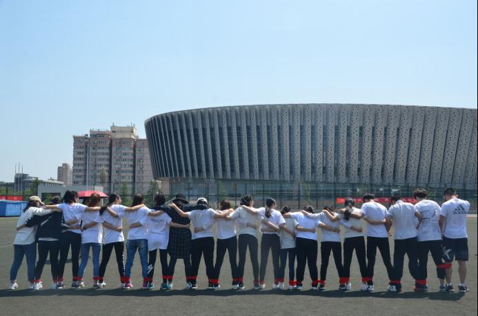 因为缺乏专业道具,参赛队员在训练上有较大难度,但同学们积极克服困难,发挥聪明才智,找来“红领巾”“呼啦圈”等物品自制赛事道具用于训练。“赛龙舟”项目中,因为道具的特殊性,队员们没有进行过模拟训练,赛中步伐大小不一致,让原本桀骜不羁的龙舟化身为一只可爱的毛毛虫,赛场上弥漫着轻松愉快的欢笑声。“传递正能量”项目中,队员们有了一周的“呼啦圈”练习基础,在极短的时间内迅速结束了比赛。“团结就是力量”项目的道具球体积之大让人望而生畏,而前几组中频发的摔倒意外更让人心惊,参赛队员商议过后,决定用男女对角线的站位完成比赛,男生主动承担起了道具球的大部分重量。“俄罗斯方块”对于团队默契和记忆能力都有较高要求,威廉希尔中文官方网站作为第一组参赛队伍,在哨声响起之时,四名参赛队员如同离弦之箭一般弹了出去,最初有一些慌乱,但以极快的速度调整了过来,圆满完成了拼图。“二十人二十一足”是此次公认的难度最大、危险系数最高的项目,在此前的练习中也出现过摔倒、绑腿绳子脱开等插曲,哨声响起后,队员们齐心协力,口中喊着整齐响亮的口号,快速通过了终点线。夏日骄阳似火,队员们腿上沾满了塑胶颗粒、草屑,脸上豆大的汗珠晶莹剔透,但大家毫无怨言,用态度和行动彰显了外院风采。