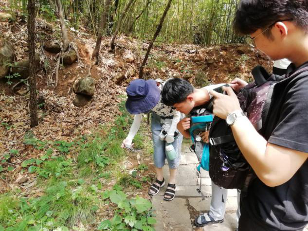 张粲首先在去目的地蒙阴之前说明了注意事项。她强调,本次调研活动最重要的是安全。紧接着,调研团来到了目的地蒙阴县,乘坐大巴车来到沂蒙山云蒙景区。成员们选择了几处的水质进行检测,采用样方法调查了多处的物种多样性。小组成员首先根据地形的特点,选取了等距取样法,使用携带的工具软尺、拾取的树枝等物品,划定了间隔相同距离的五个面积一平方米的正方形进行取样。同时严格遵循生物学中的计数原则,力求实验的准确性。由于蒙山景区共有植物900种左右,因此在操作过程中,成员在辨识植物上遇到一定的困难。在小组成员一定的生物学知识基础上,通过APP花伴侣的辅助,能够准确快速的识别大多数植物,成员们高速有效的在计划时间内完成了任务。同时对沿路看到的孙膑洞、红嫂洞、李时珍旧居等历史景点进行了背景研究。