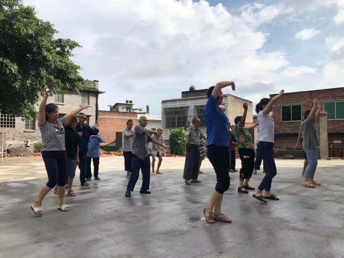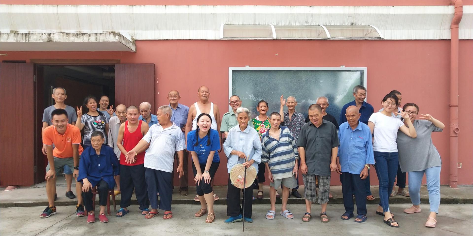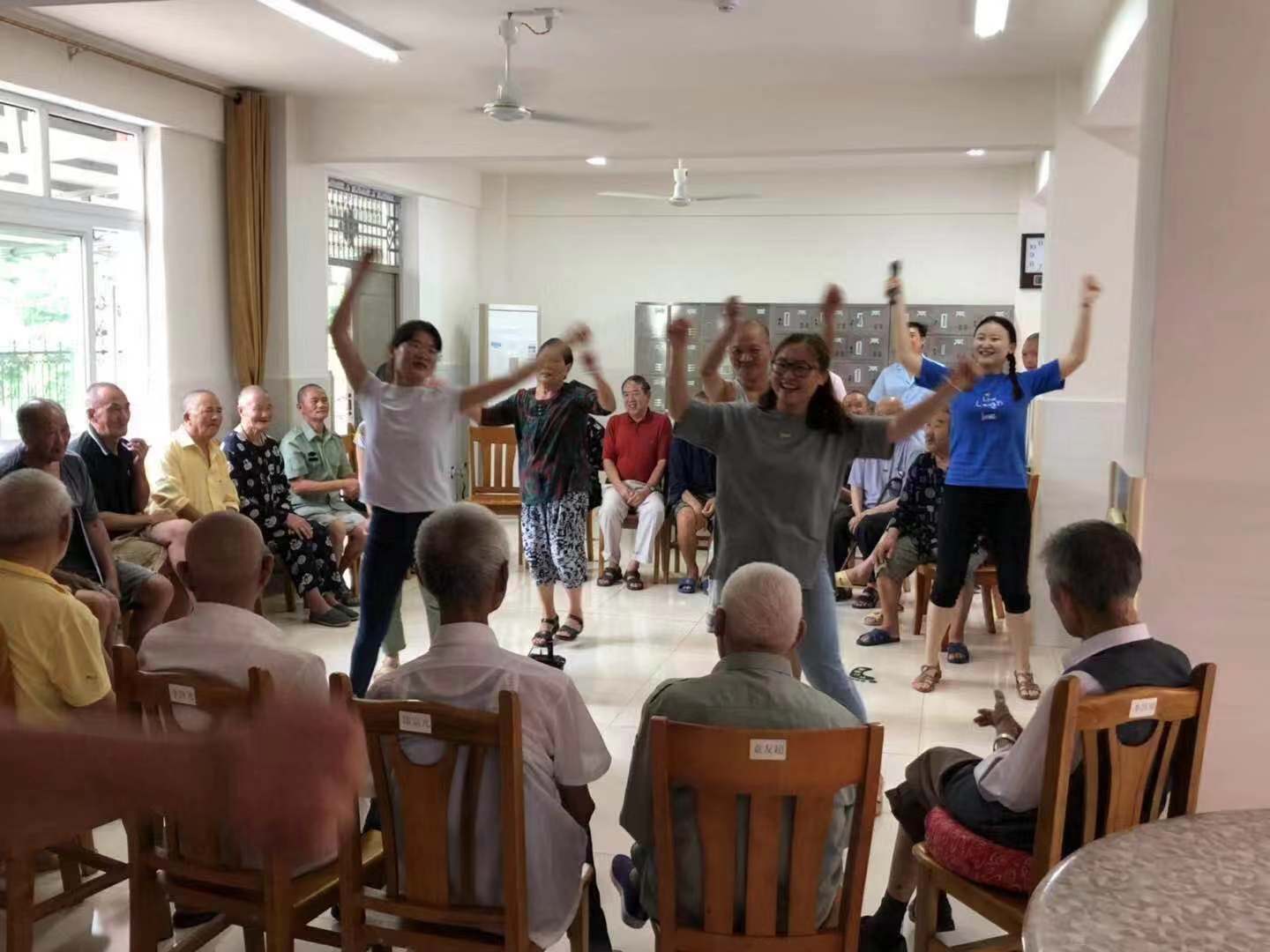 这个衣着朴素,素面朝天,靠年轻的力量燃烧气氛的女团,是威廉希尔中文官方网站四位学子组成的临时乡村女团。只见她们打开手机连上蓝牙音箱,就形成了“豪华设备”,因为只有一个话筒,所以大家都扯着嗓子大声为听力退化的老人唱歌,看见活跃的老人,就把话筒举到他面前,一起大合唱。再配上女团临时自创的改良“广场舞”,连唱带跳,这个场面也算是热热闹闹,融洽快活了。