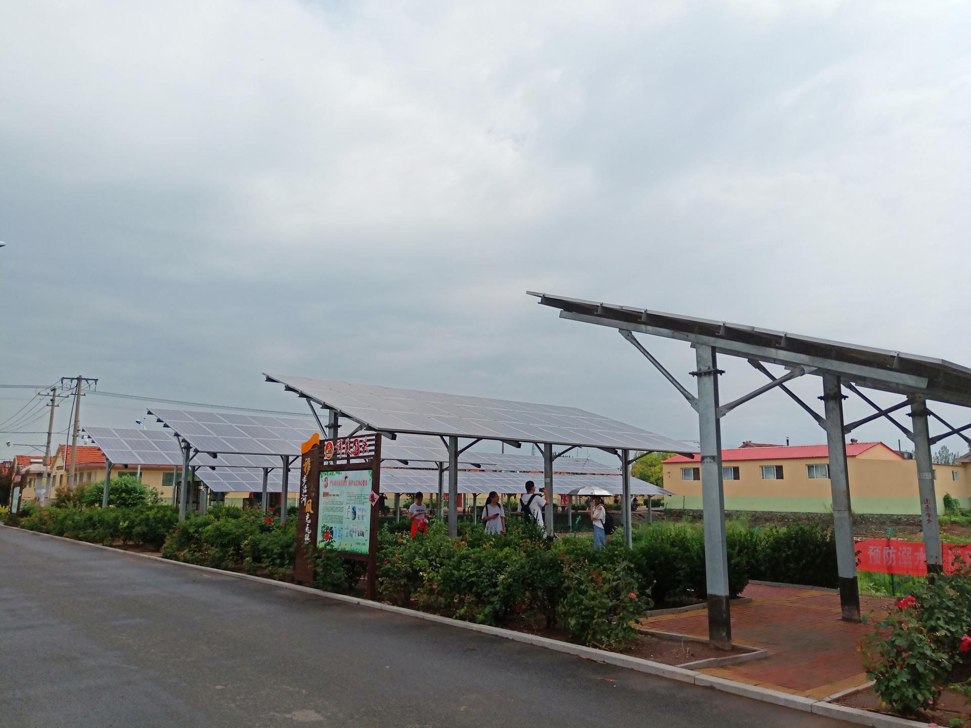 在参观完社区服务中心和办公室后,团队成员在王明典书记带领下走访村庄各处,了解生态宜居建设状况,看到村庄环境优美、绿化丰富,同时也有许多便民设施,崭新的村广场上摆着齐全的健身器材。道路旁随处可见宣传道德故事与模范村民的公示牌,屋墙上张贴着与社会主义核心价值观有关的内容。道路两旁设置的“美丽家庭”“榜样的力量”“村庄由来”等展示牌诉说着道头村的文化底蕴和文明风尚。水库边一块块太阳能板整齐地排列着,王书记介绍道,光伏发电项目不仅实现了村子电力的自给自足,一年还能带来五万多元的集体收益,是道头村脱贫致富的重中之重。太阳能板遮挡出一片阴凉,伴着水波粼粼与垂柳依依,项目下的石桌石凳交错排列,已成为村民们农闲时最喜爱的休闲场所。在路旁的阴凉处,时不时能看到三三两两围簇的村民拉着家长里短,热情友善地与团队成员问好。