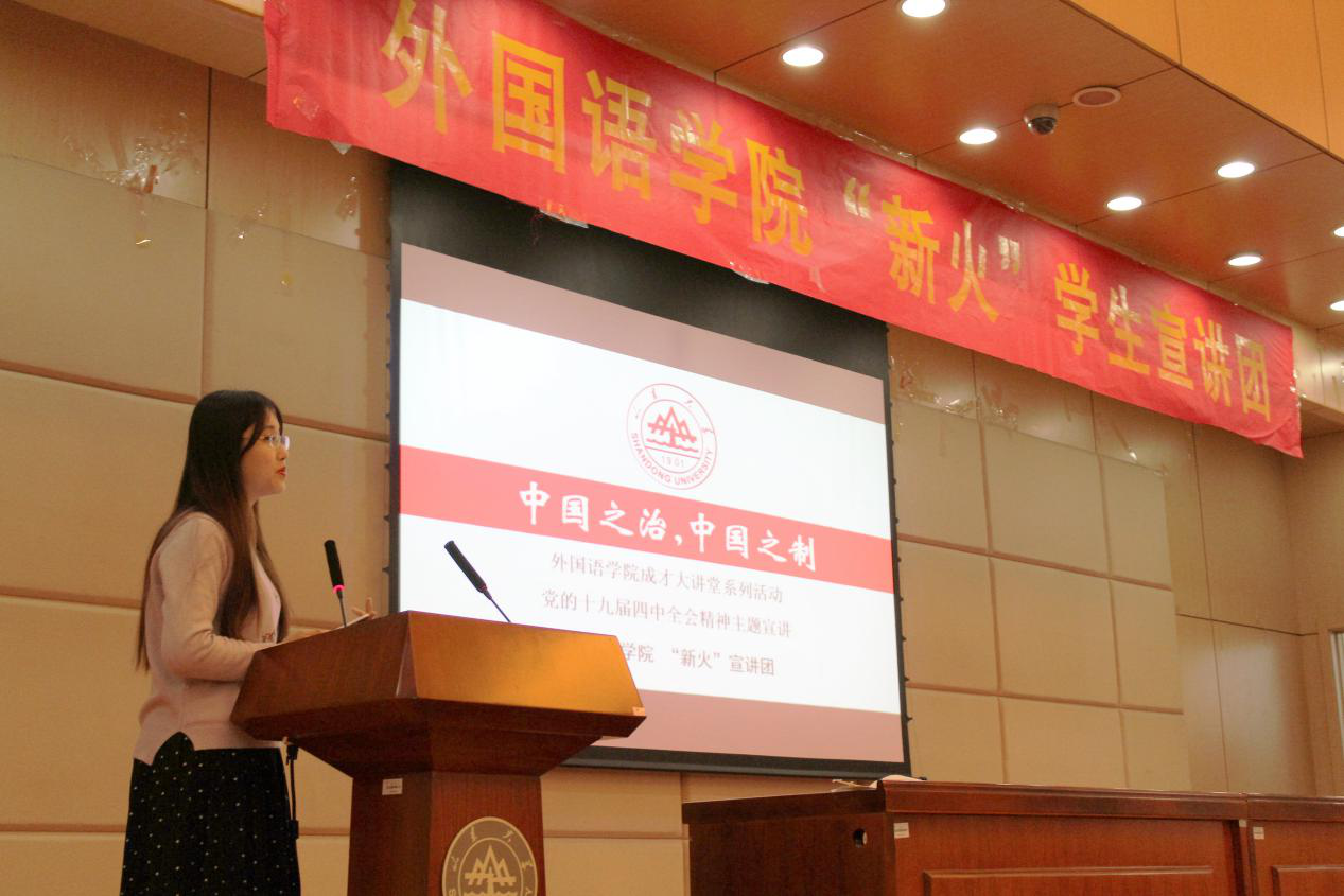 本次宣讲有效增进外院学生对于当代中国党和政府制度设计与治理模式的了解,促进学生深入学习宣传贯彻落实党的十九届四中全会精神,提高学生政治站位,全面提升大学生的政治素养与家国情怀,培养具有“大格局、大视野、大胸襟、大情怀”的中国特色社会主义青年力量