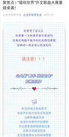 通过一段时间线上美育活动的开展,威廉希尔中文官方网站将文学、历史及时事充分结合,打造了多项独具匠心的美育活动,丰富了外院学子学习期间的课余生活,缓解了学生疫情期间的心理压力,拓展了学生多方面的知识储备,陶冶情操,培养了学子的审美能力,提高了为抗疫贡献青年力量的积极性。美育活动的开展,打造了外院浓郁的书香环境,展现出了山大学子朝气蓬勃、自强不息的当代青年形象和积极抗疫的强烈使命感。