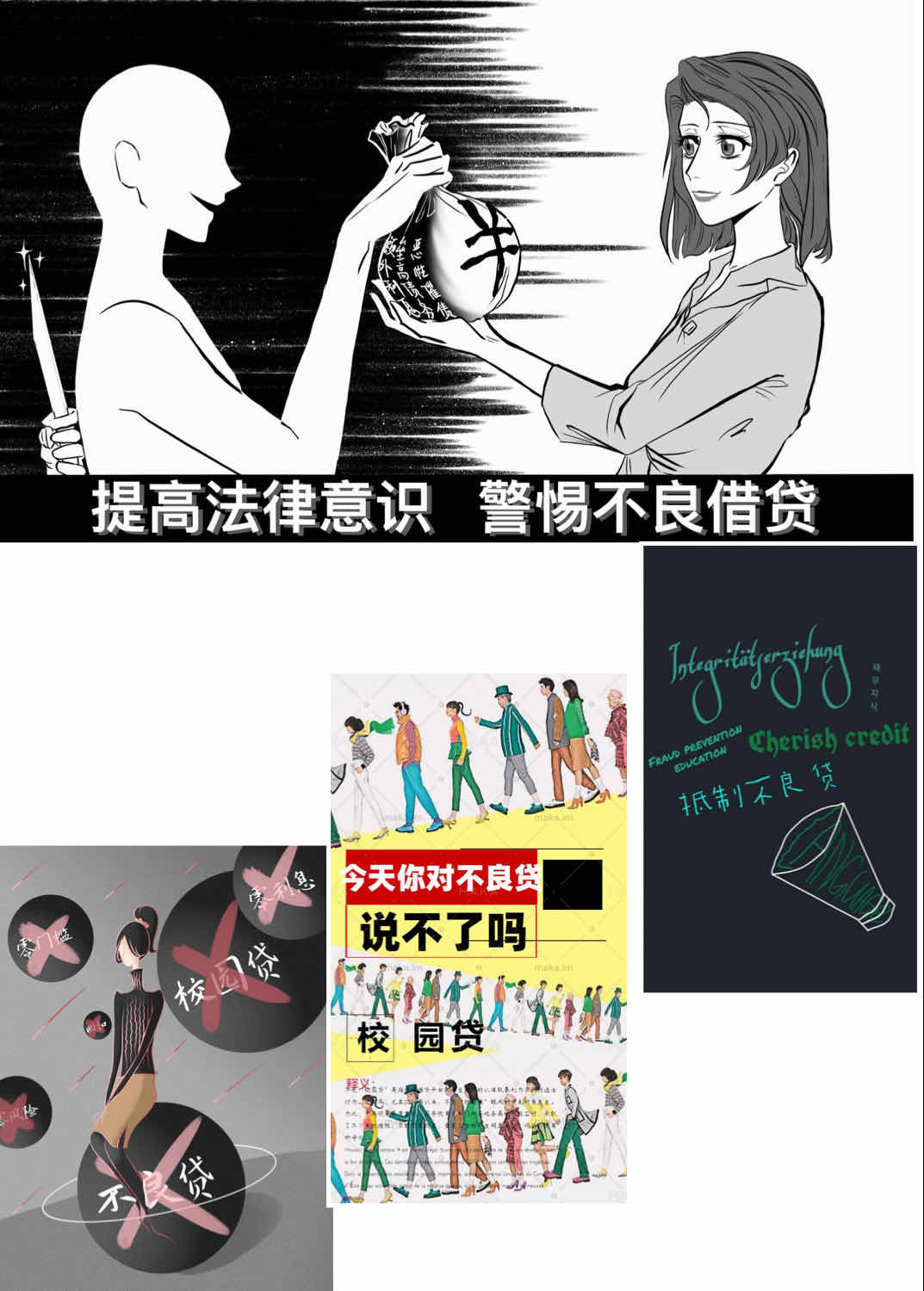 本次活动面向威廉希尔中文官方网站全体学生,通过翻译、征稿、班会等方式,向同学们普及征信知识、金融知识。活动形式新颖,将外语特色与资助诚信主题相结合,兼顾艺术性与专业性。活动准备过程中,学生会知行部准备了有关不良贷、套路贷等贷款的法律法规、受害案例等资料,发布推文进行诚信贷款知识普及,鼓励学生根据所给材料设计远离“不良贷”宣传海报,书写自己的感悟,或翻译所给材料进行投稿;并鼓励各班召开主题班会,模拟常见的诈骗手段,讨论应对方法,提高同学们的警惕性。活动收到丰富的投稿,包括海报作品、翻译作品、相关感悟、班会总结等。活动设置6个奖项,以征稿内容水平划分为一、二、三等奖,优秀作品以推文形式展出。